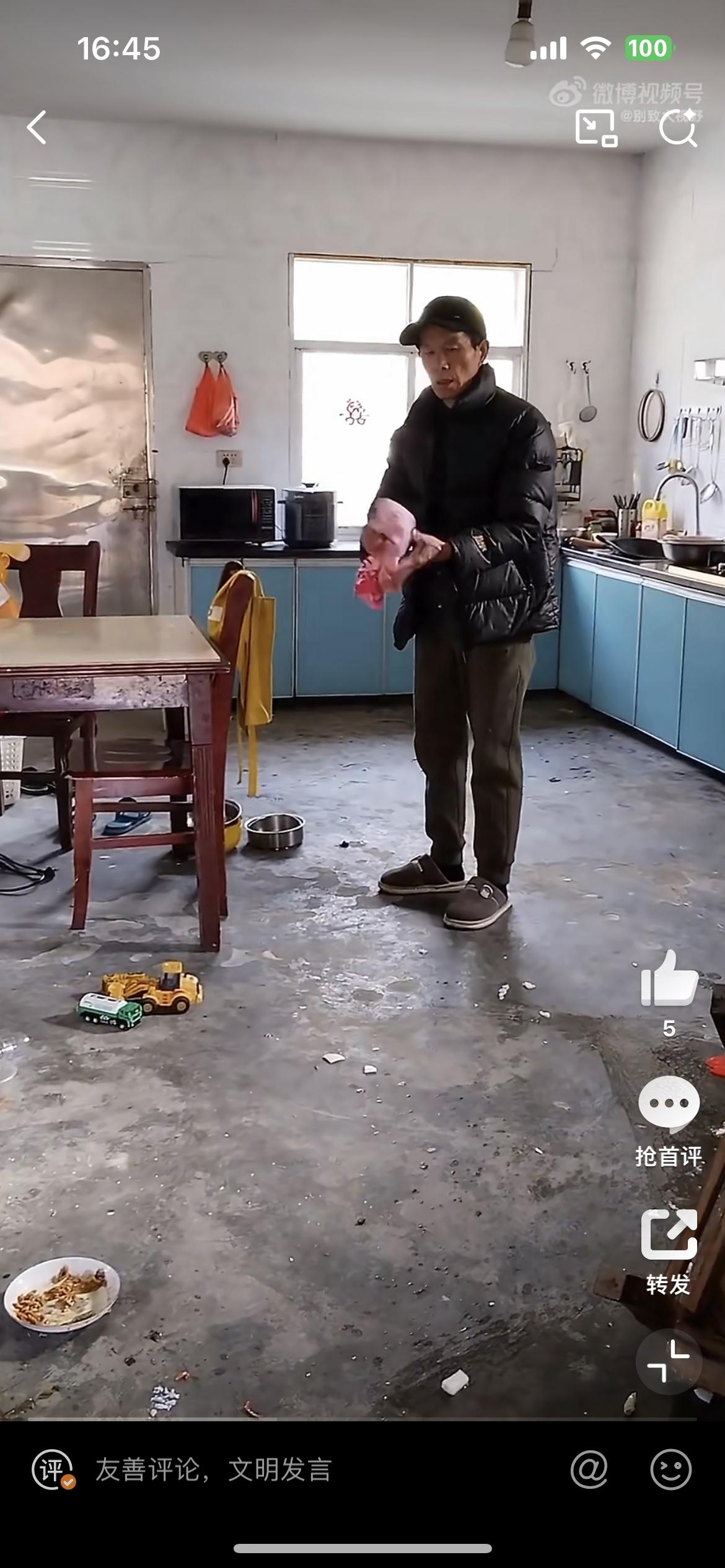 摊上这样的公公也是灾难,为了一点点小事把厨房给砸了,媳妇在旁边抱怨,听口音是湖北江汉平原那一带的。看这个公公年纪也不算大,脾气却火爆,要不是婆婆出来阻止,估计家都要被拆了。家庭里面婆媳关系难处理,如果公公和媳妇不对付,基本上就是要散伙了。公婆的难处 公婆家的坏心事