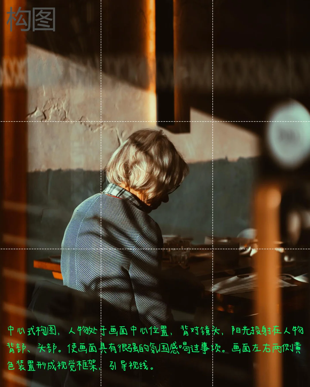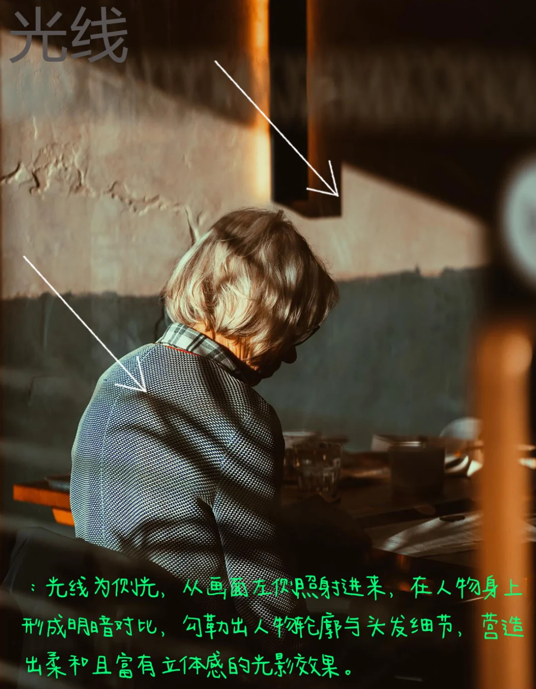 hi,朋友们,大家好。我是东东。 本期分享来自sixstreetunder的摄影作品,他是一名英国摄影师。他善用色彩、构图和叙事,作品具视觉冲击力。常以窗户反射、蒸汽缭绕、光影交错等元素营造画面;对细节关注度高,能捕捉到常人易忽略的细微之处,为作品增添趣味性和深度。 今天我们一起来看看他的作品是怎么构思,希望对大家提升审美,学习拍照有实实切切的帮助。下面我们开始吧。 1.构图:采用框架式构图,利用窗户边框作为框架,将人物框在画面内,引导观者视线集中于人物,增加画面层次感与形式感。 2.光线:光线为侧光,从画面左侧照射进来,在人物身上形成明暗对比,勾勒出人物轮廓与头发细节,营造出柔和且富有立体感的光影效果。 3.影调:影调偏暗,暗部区域较多,人物受光部分相对明亮,形成明暗反差,增强画面立体感,营造出静谧、沉稳氛围。 4.色调:暖色调,以暖棕色(光线及窗框)、灰色(墙面及衣物)呈现暖色,色彩搭配沉稳且温暖,传递出一种怀旧、安静的感觉。 5.拍摄角度:从画面看,可能使用中长焦镜头,可能是平视角度拍摄,虚化背景,突出主体人物,压缩空间,使强调画面氛围。 ✅此笔记适用于摄影新手,摄影爱好者,欢迎大家补充交流~ ✅多看、多拍、多想,让摄影变得更简单 ✅也👉点击我的主页,定期分享,欢迎进群讨论学习 ✅微信公众号:余小东PHOTO,有深度长文,欢迎关注订阅