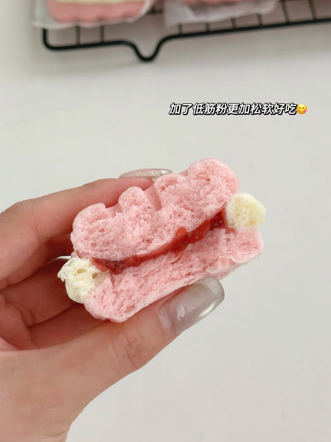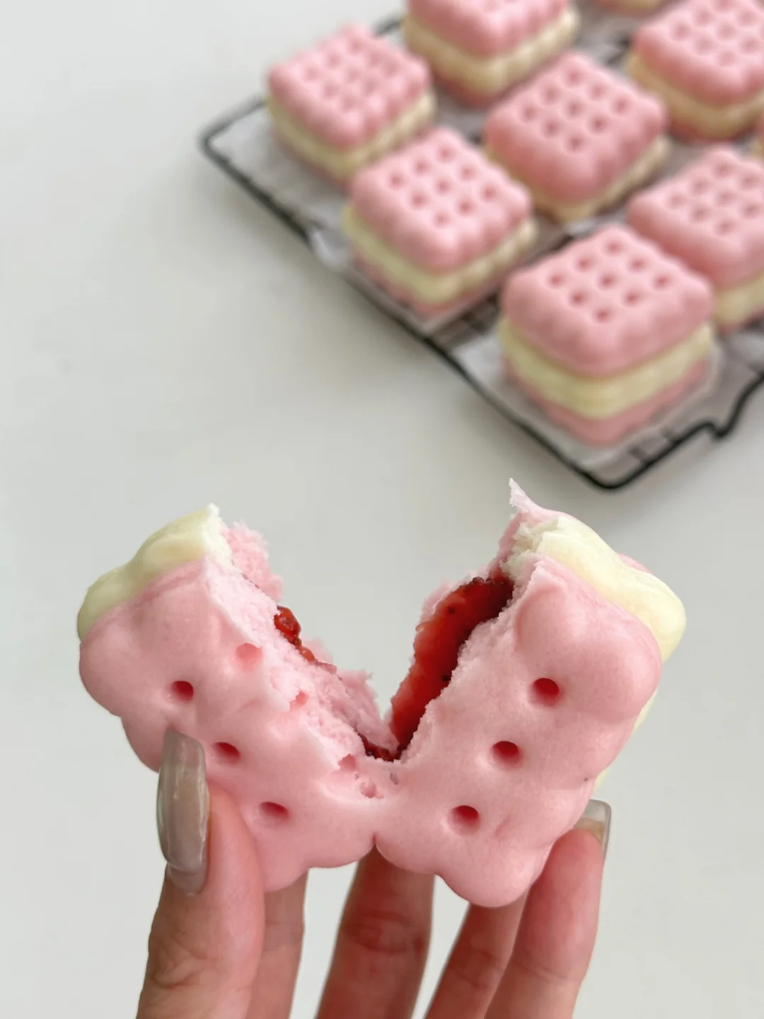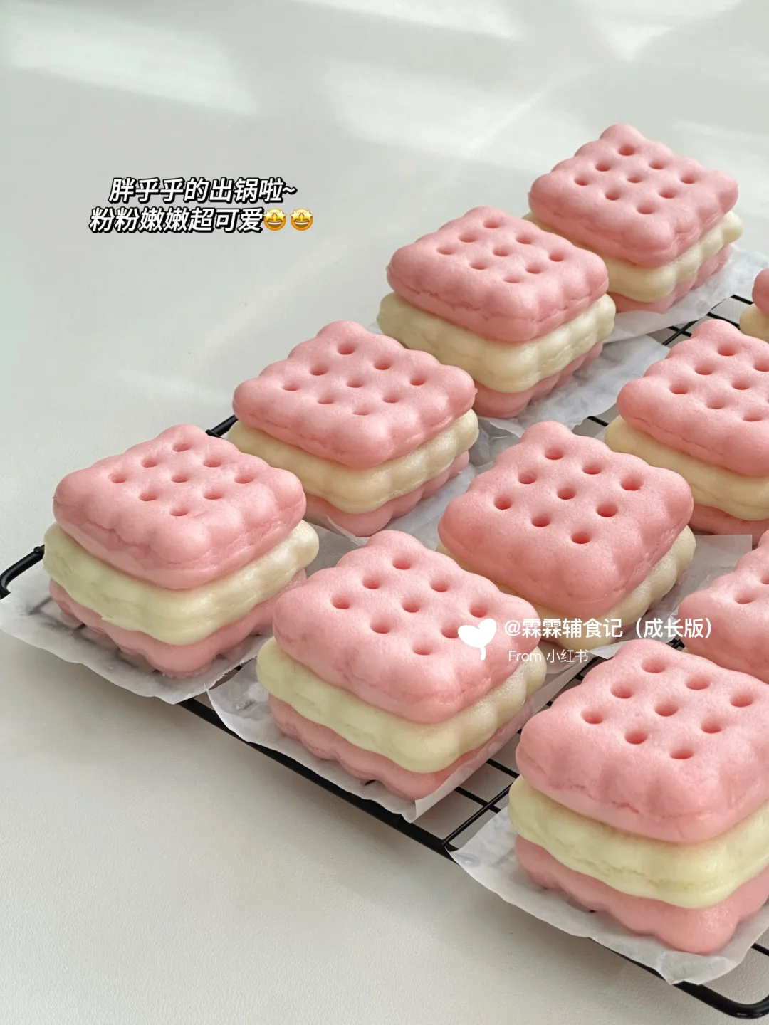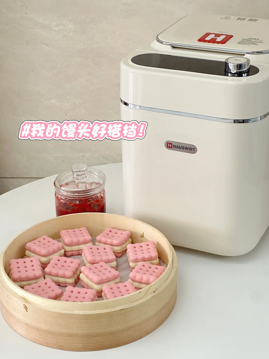 分享一款无敌可爱的草莓饼干馒头 用自制的草莓果酱做夹心,酸酸甜甜巨好吃! 用面包机做的果酱方便又省事,用不完的可以密封起来放冰箱,随吃随取,也可以抹在吐司上吃或者做成草莓果酱饮品[哇R][哇R] 做成馒头夹心也很惊艳!酸甜的果酱加上蓬松宣软的馒头,怎么吃都不会腻呀!加上造型可可爱爱,小朋友喜欢得不得了,妈妈们赶紧动手试试吧[派对R]