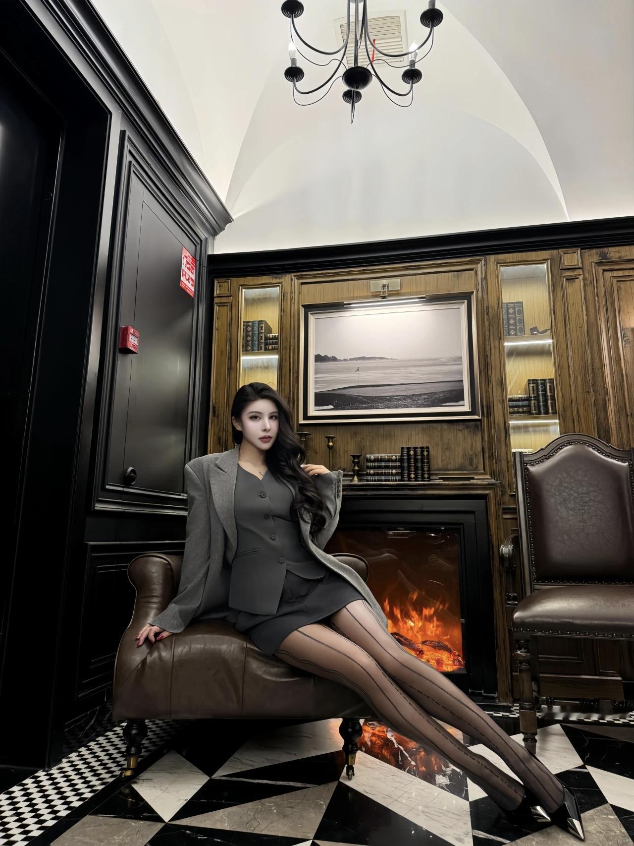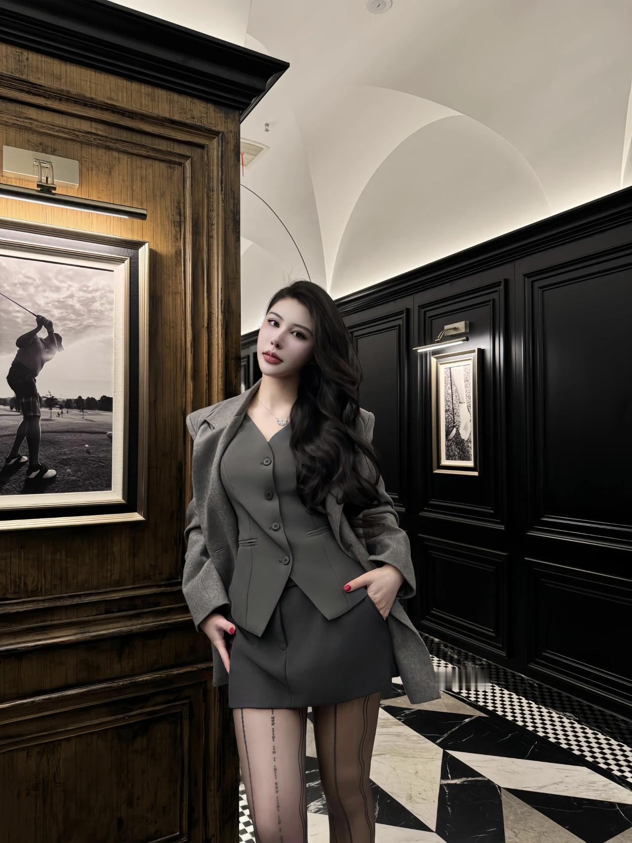 浅灰色气质西装套裙高级感修身显瘦!舒适美丽穿搭喜欢的穿搭分享