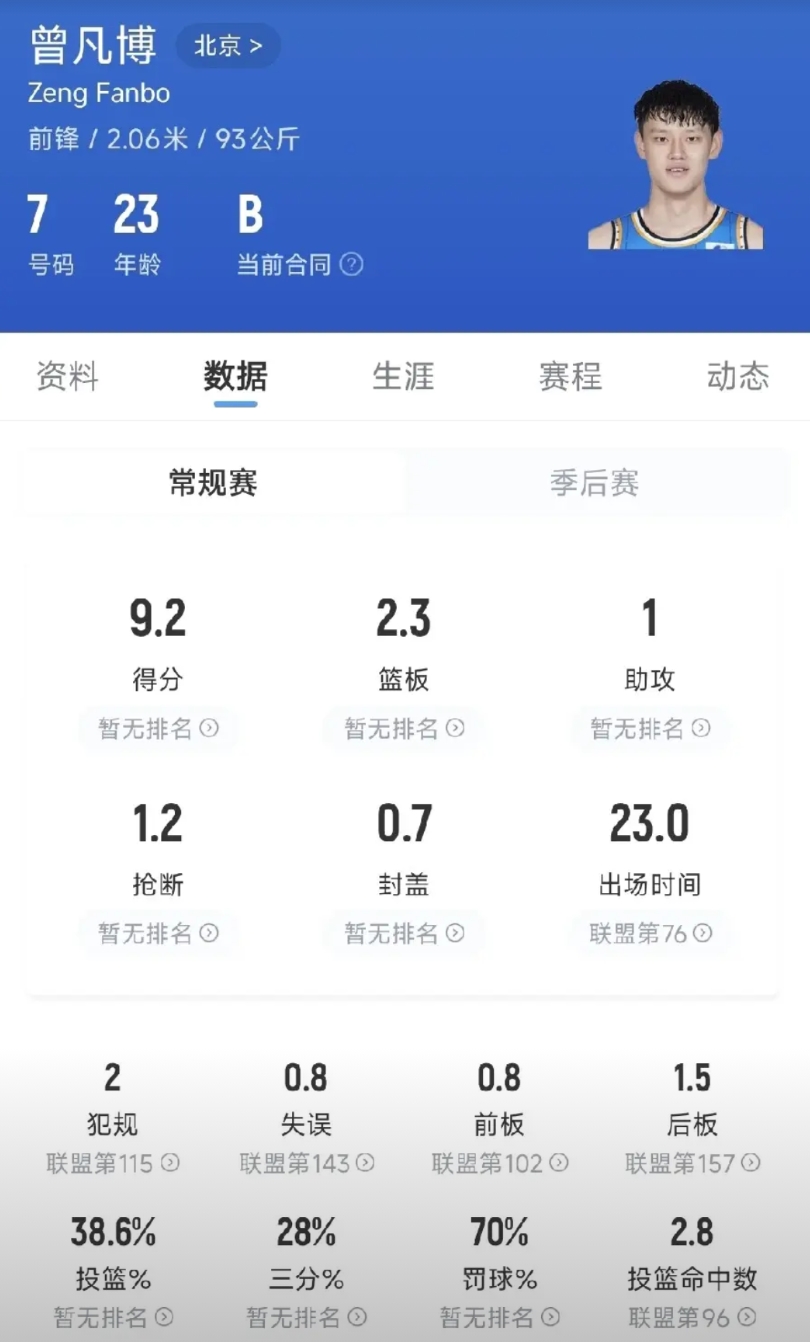场均9.2分2.3篮板1助攻,整体命中率为38.6%,三分球命中率更是低至28%。