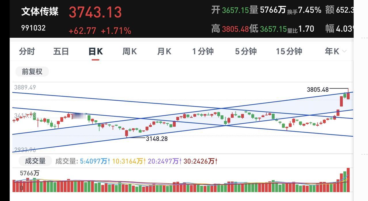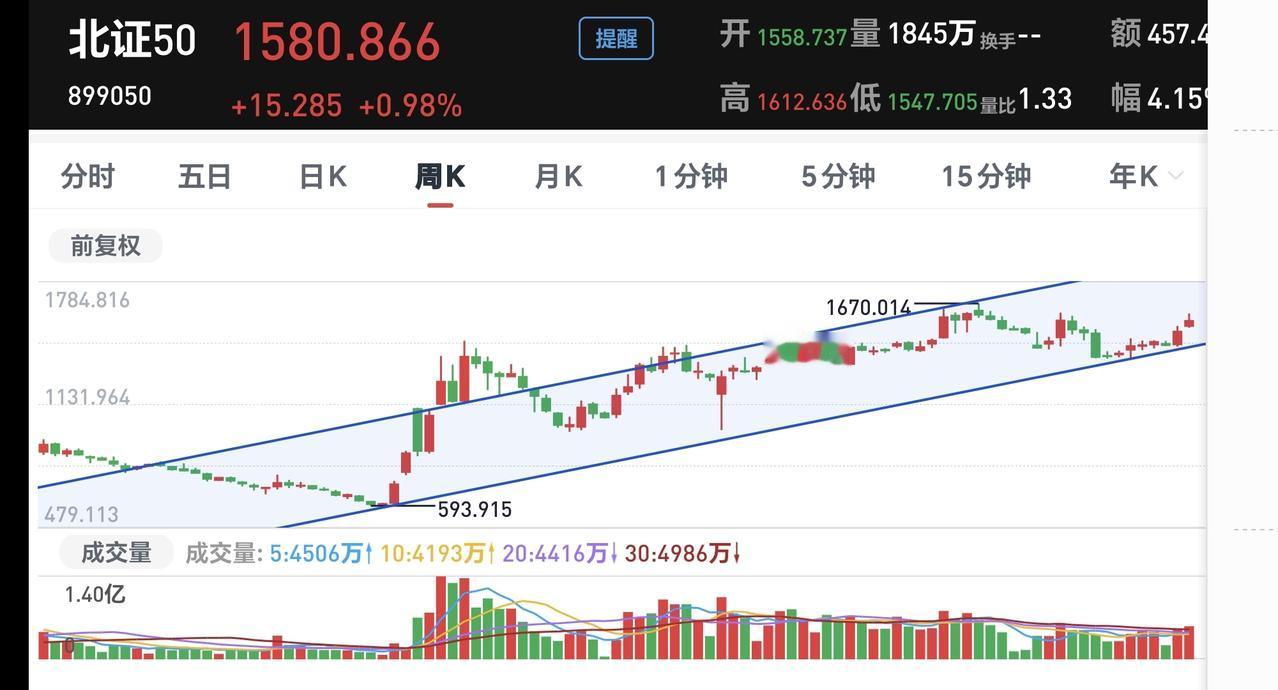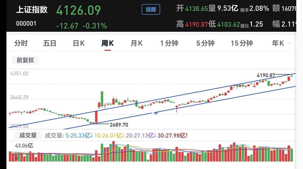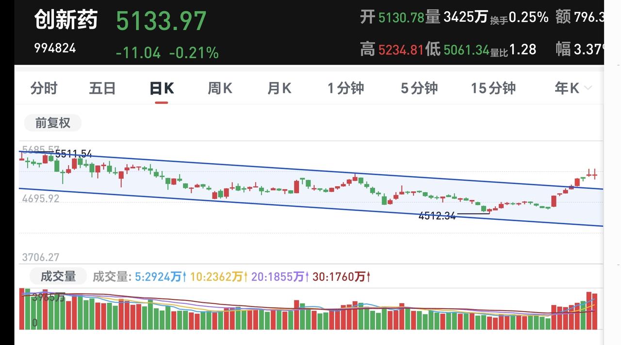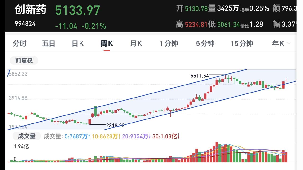基金:为什么挑选今天来干预市场的走势 欧洲市场现在是涨跌不一,英国上涨了0.36%,法国上涨了0.15%,德国下跌了0.35%,涨跌幅度都不大。 香港市场今天是上涨,恒生指数上涨了0.56%,国企指数上涨了0.32%,恒生科技指数上涨了0.66%,上涨幅度眼都不大。 图3是今天基金的加仓排行榜,图4是今天基金的减仓排行榜,图5是今天基金的持有人数飙升榜,图6是今天基金的加仓人数和减仓人数,今天加仓66033253人,今天减仓28148458人,今天加仓人数超过了减仓人数。 我们来看一下下面的截图7,这是上证指数周K线图,从图中可以看出,我画了两条倾斜向上的斜线,这是上证指数周线级别上涨通道,今天的最高点正好打到了这个上涨通道的上轨线上,如果继续上涨,就会突破这个上涨通道的上轨,也就是上证指数周线级别就会进入加速上涨的阶段,所以,为了防范疯牛,今天有关方面出手干预了市场,从上证指数的角度看,今天有关方面也必须要出手。 我们来看一下下面的截图8,这是创业板指周K线图,从图中可以看出,我画了两条倾斜向上的斜线,这是创业板指周线级别上涨通道,今天盘中的上涨突破了这个上涨通道的上轨,也就是说,如果不回落的话,创业板指有可能就进入了加速上涨的状态,所以,从创业板指角度看,今天有关方面也必须要出手,不然的话,创业板指也会进入加速上涨的状态。 这样的话你就明白了,有关方面为什么早不出手,晚不出手,为什么就要选择在今天出手,因为再不出手的话,他们就已经走在加速上涨的路上了,拉住他们,不让他们疯跑,是好事情,可以跑的时间更长,可以跑的更远,如果让他们真的疯跑起来,最后肯定是一地鸡毛。 持有的基金中,有部分基金的净值已经更新,上涨幅度最大的三个板块是:AI应用板块,芯片半导体板块,5G板块,下跌幅度最大的三个板块是:医疗板块,军工板块,白酒板块,净值暂时上涨了1466元。 持有的基金中,今天下跌幅度最大的是创新药板块基金,净值更新下跌了1.06%,超过了创新药板块0.53%的下跌幅度,这个板块今天加仓排行榜见下面的截图12,持有人数排行榜见下面的截图13,加仓人数最多的是永赢医药创新智选混合,持有人数最多的是华夏恒生生物科技。 我们来看一下下面的地图14,这是创新药板块日K线图,从图中可以看出,我画了两条倾斜向下的斜线,这是创新药板块日线级别下跌通道,前几天上涨突破了这个下跌通道的上轨,这几天是在下跌通道上轨线上方震荡,从日线角度看,创新药板块日线级别下跌趋势有可能已经被改变。 我们来看一下下面的截图15,这是创新药板块周K线图,从图中可以看出,我画了两条倾斜向上的斜线,这是创新药板块周线级别上涨通道,前段时间下跌跌破了这个上涨通道的下轨,上一周的上涨又回到了上涨通道中,本周是在这个上涨通道内震荡,也就是说,创新药板块周线级别又重新回到了上涨趋势中。 我们来看一下下面的截图16,这是传媒游戏板块日K线图,从图中可以看出,我画了两条倾斜向上的斜线,这是传媒游戏板块日线级别上涨通道。前段时间上涨又重新回到了上涨通道内,今天盘中大涨的时候,突破了这个上涨通道的上轨,收盘的时候又回到了上涨通道内,也就是说,传媒游戏板块日线级别还是处于上涨趋势中。 我们来看一下下面的截图17,这是传媒游戏板块周K线图,从图中可以看出,我画了两条倾斜向上的斜线,这是传媒游戏板块周线级别上涨通道,现在的位置处于这个上涨通道内,也就是说,传媒游戏板块周线级别处于上涨趋势中,持有的人可以继续持有,除非跌破这个上涨通道的下轨,才可以考虑要不要止盈出来观望。 我们来看一下下面的截图18,这是北证50板块周K线图,从图中可以看出,我画了两条倾斜向上的斜线,这是北证50板块周线级别上涨通道,现在的位置处于这个上涨通道内,也就是说,北证50板块周线级别处于上涨趋势中,持有的人可以继续持有,除非跌破这个上涨通道的下轨,才可以考虑要不要止盈出来观望。 我每天都会分享我的观点,我的观点只代表我个人的看法,不能作为你操作的依据,据此操作后果自负。