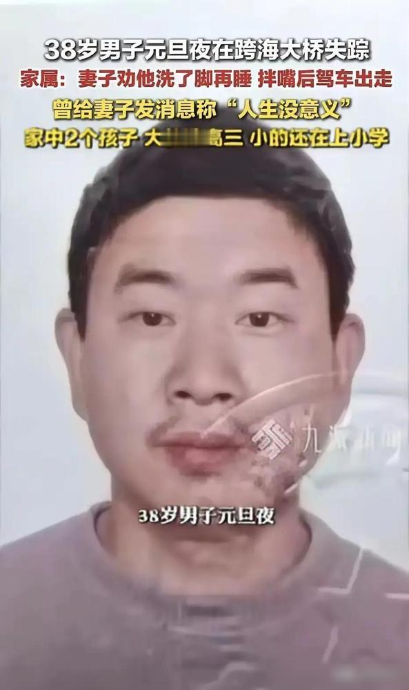 泪目!福建石狮,深夜,38岁的河南籍男子从朋友那边散场回家。妻子让他洗个脚再睡,他情绪一下顶上来,和妻子拧了两句,转身摔门出去,接着给妻子发来“人生没意义”,随后独自开车上泉州湾跨海大桥,把车停在应急车道,双闪灯一直闪,人却不见了。 他在石狮打工20年,工作稳当,家里攒了钱,正计划全款买房,俩孩子一个准备高考、一个读小学。那天收工又和朋友聚了会儿,身上累心里堵,妻子一句“洗脚”成了导火索。家人报警后,在桥上找到他的车,手机、钱包、证件都在,监控只拍到他下车离开的影子。弟弟从外地连夜赶,老父亲从河南老家奔来,救援队用无人机搜海面,渔民帮忙找小岛,找了好几天,还是没线索。 成年人的崩溃真的藏在细节里。他停应急车道还开双闪,说明心里还记着安全,这样的人哪是脾气差?是累狠了啊。夫妻间一句“洗脚”本是关心,可压垮骆驼的从来不是最后一根稻草。身边那些“看起来没事”的中年人,可能早就在硬撑了。多留意他们的疲惫,少点催促,多点软话,哪怕一句“今天辛苦了”,说不定就能把人从情绪悬崖边拉回来。 真心希望他只是暂时想不开,能早点回家。也想对所有累着的人说:你不是一个人,别把所有压力都自己扛。
