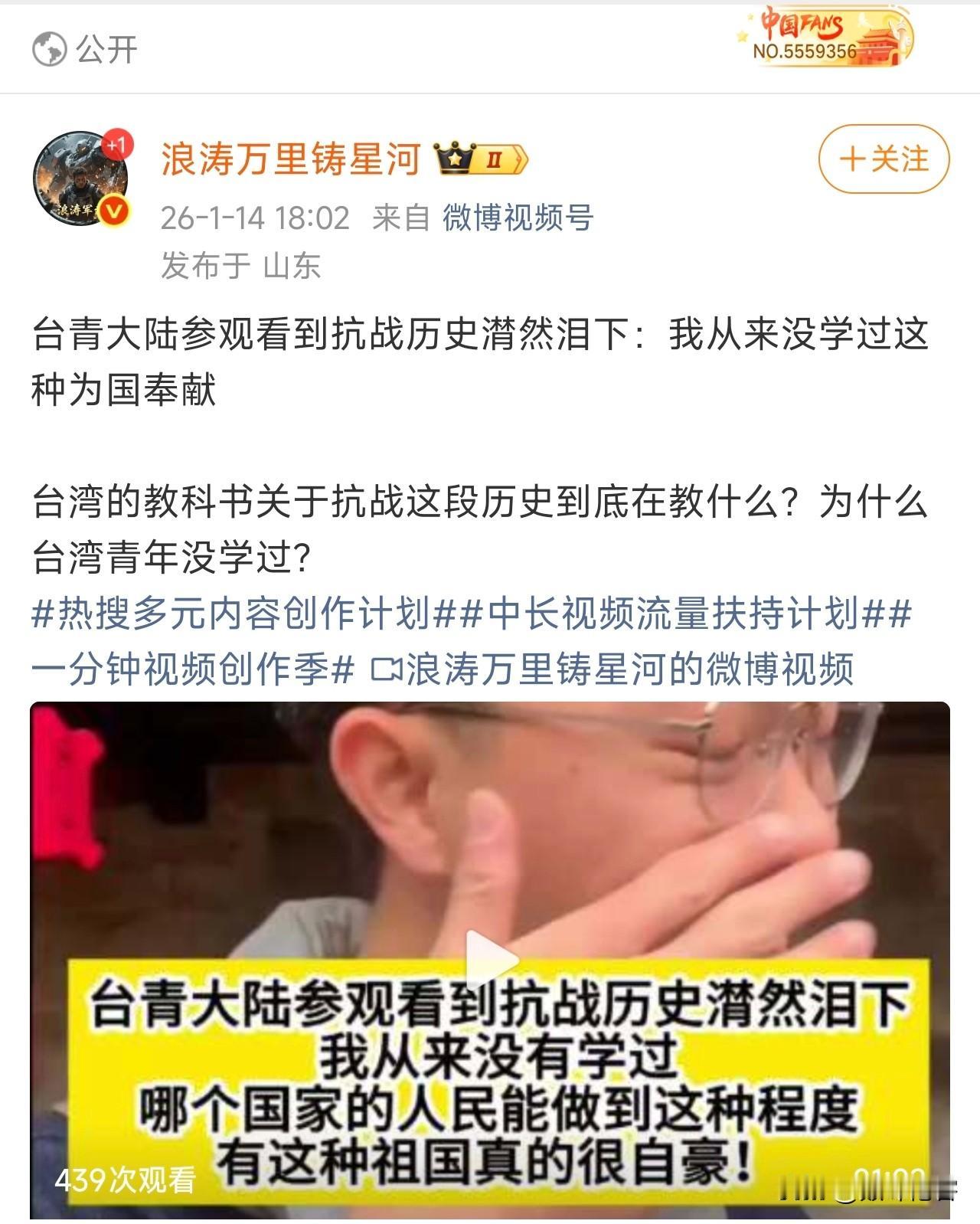 存个资料:台湾青年大陆参观看到抗战历史潸然泪下,在台湾没有学过这些历史!
