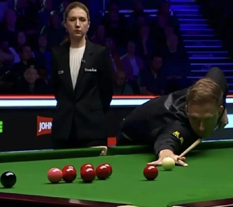 哈哈,特鲁姆普又奔6-2来了! 第7局,丁俊晖又是安全球防守母球摔袋铸大错! 特鲁姆普喜获大礼当然不会错过极好的进攻机会。一杆清台,打出单杆121分,125-0再下一城,比分5-2拿到赛点。