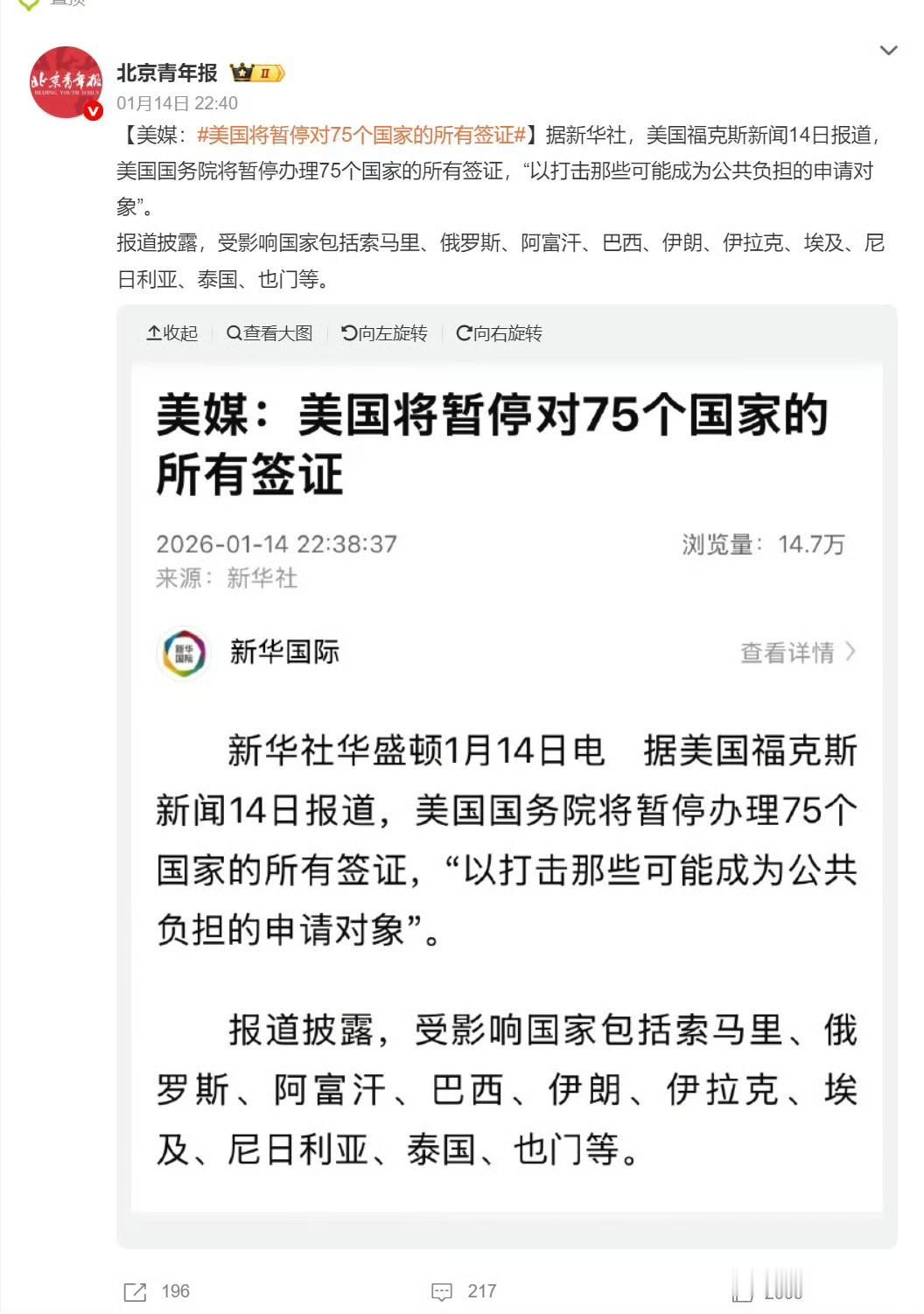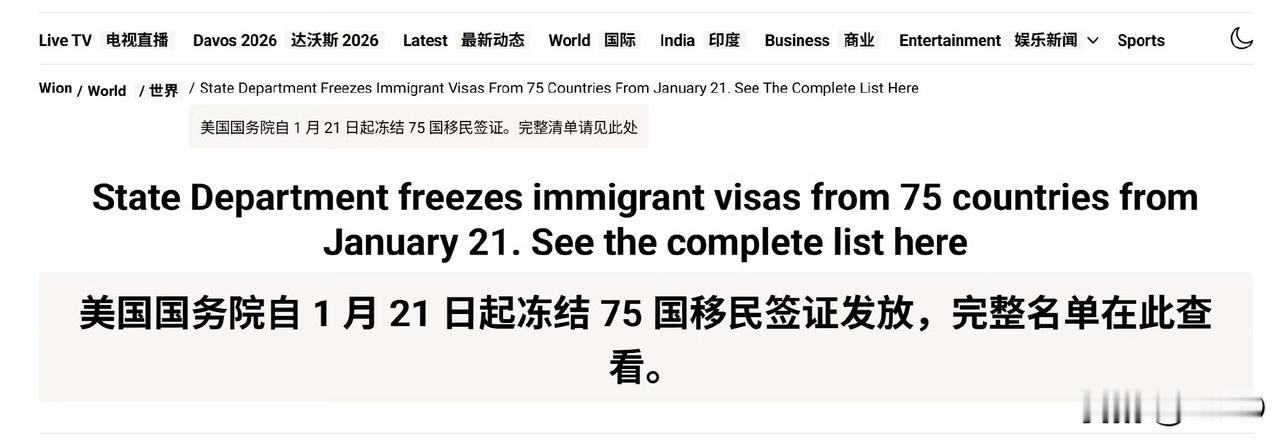 一家总部位于新德里的印度英语国际新闻频道wionews,声称掌握了具体名单。不过,我在美国国务院官网、白宫官网上还没有看到相关公告或完整75国名单。只有其他移民政策更新,如基于美国国家安全的Presidential Proclamation 10998(从2026年1月1日起生效,限制39国入境,包括19国全禁和20国部分禁,与75国名单无关)。鉴于印度媒体的可信度,这个名单大家也就作为参考看看,具体还是要以美国媒体援引的美国政府官方文件为准。