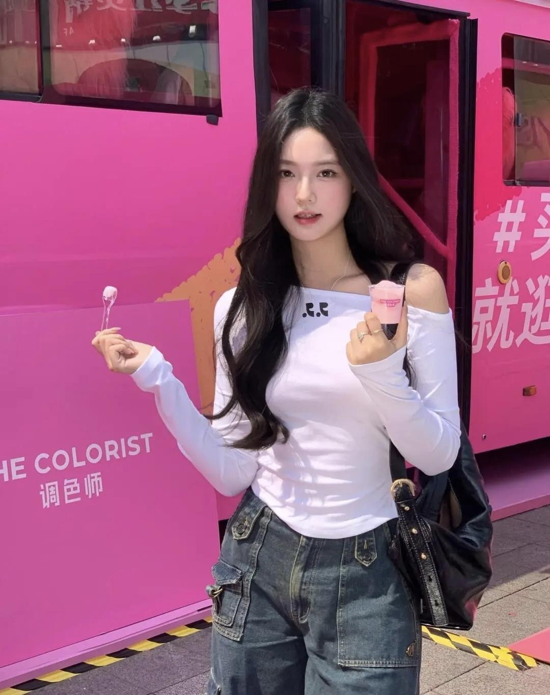 玫红背景撞出甜酷氛围,白衫牛仔揉着随性的调调,在城市的粉色转角,把少女感和酷飒感拿捏得刚刚好💖
