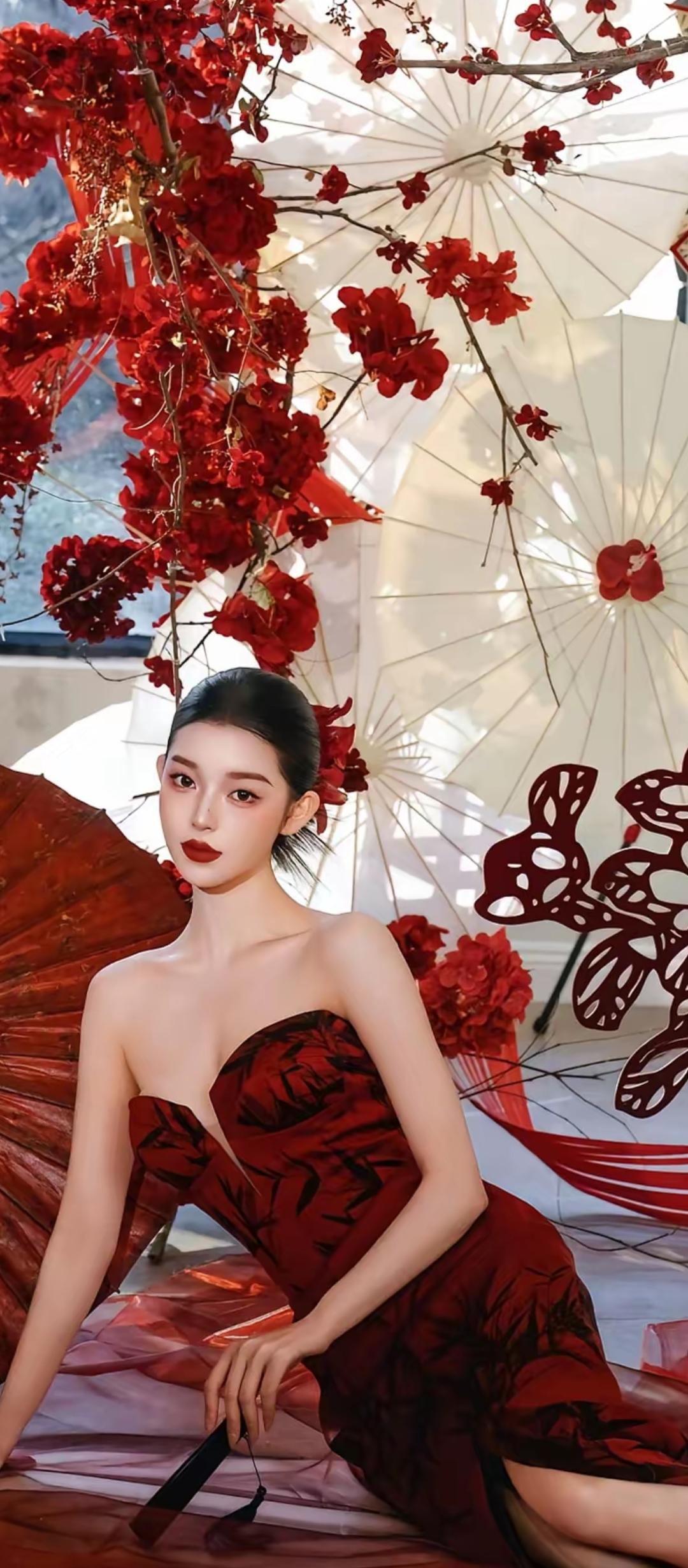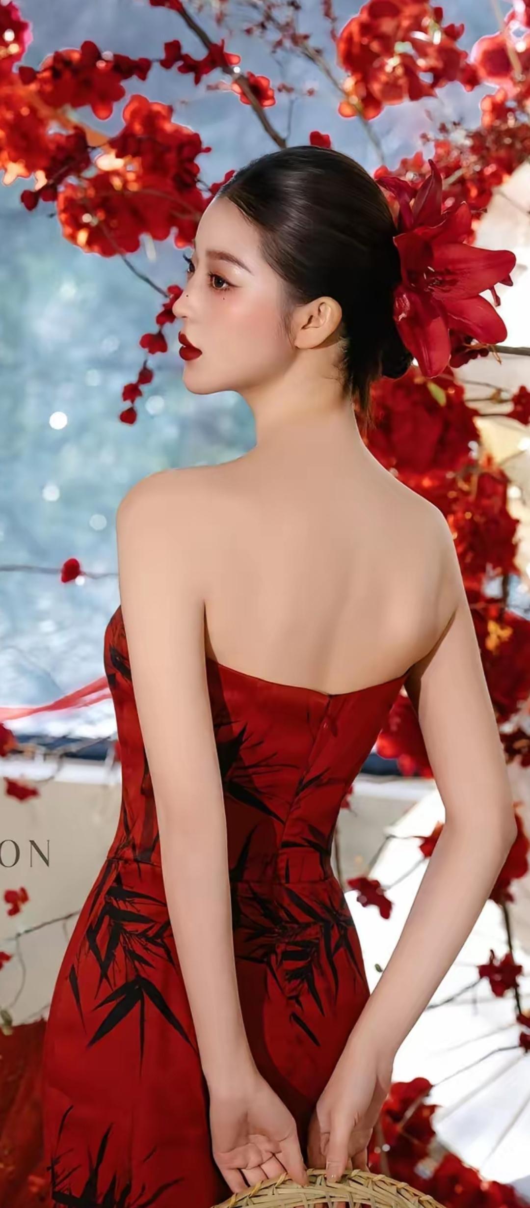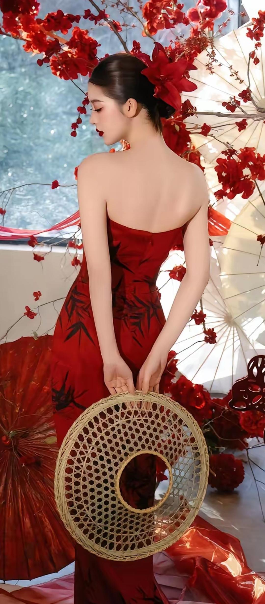 惊艳红裙,东方韵味,优雅动人