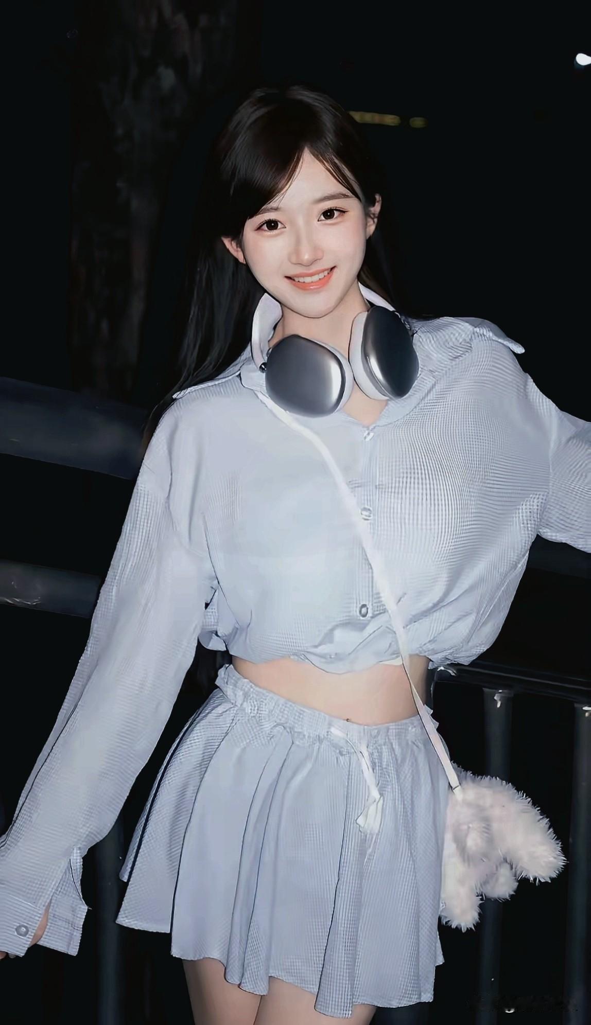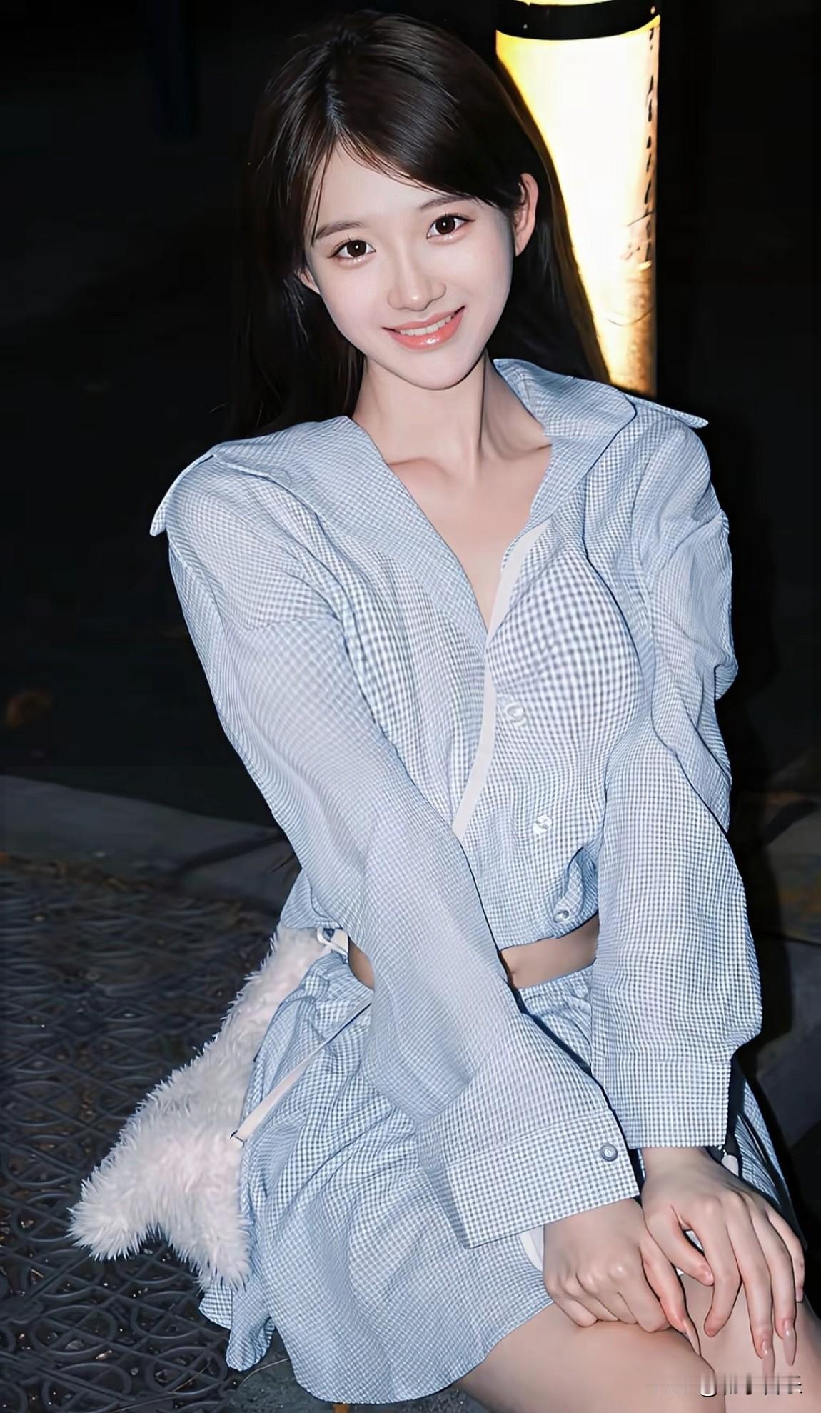 夜色街头,蓝白条纹衬衫少女挎着毛绒包包,甜酷交织,可爱又时尚!💕📸 发一张你眼中最美的微笑照片微笑美女 今日分享随手拍照片 手机随手拍 记录美好点滴 用一张图片来记录生活