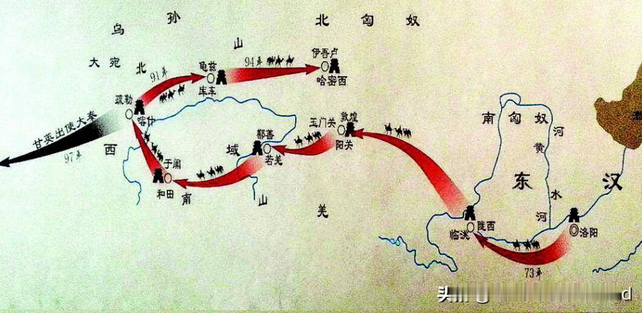 西汉张骞出使西域是从长安到西域趟了一条土路。而班超出使西域是从洛阳到西域修了一条高速公路,而且把在这条高速公路的西域50国尽收归东汉,你说意义重不重大?