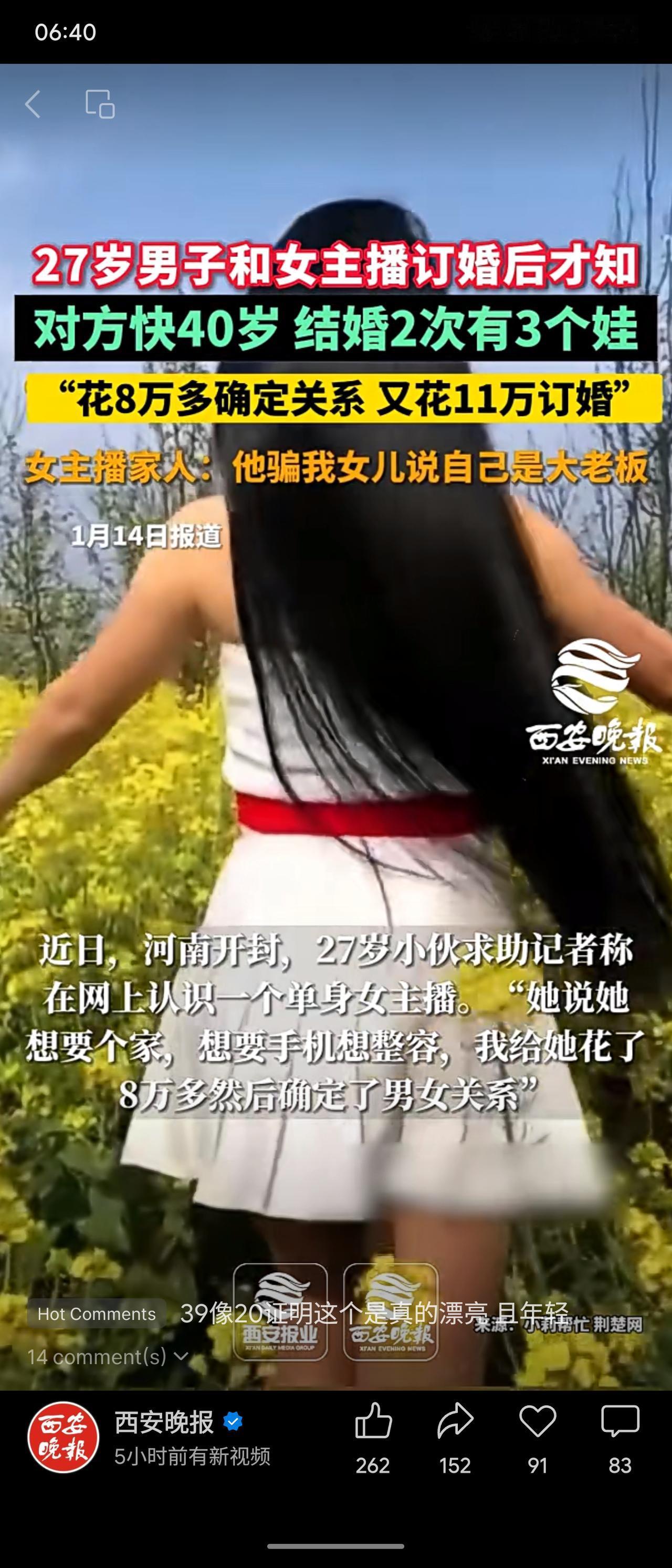 27岁男子与一名自称单身的女主播网恋,先后花费8万多元确定关系、11万元订婚后,才发现对方实际已近40岁,曾两次结婚并有三个孩子。双方各执一词,男子指责对方隐瞒,女方家人则称其冒充老板骗人。