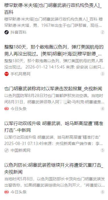 整整180天,那个敢炮轰以色列,弹打美国航母的男人再没出现过。以前只要有点风吹草动,叶海亚那身笔挺的军装准时出现在镜头前,一脸冷峻地宣读“判决”。现在倒好,整整180天,连个预告片都没了。 麻烦看官老爷们右上角点击一下“关注”,既方便您进行讨论和分享,又能给您带来不一样的参与感,感谢您的支持! 2025 年上半年的中东舆论场,也门胡塞武装发言人叶海亚・萨雷亚是绝对的 “流量焦点”。只要胡塞武装有军事行动,不管是袭击以色列关联货轮,还是对美国 “杜鲁门” 号航母发动导弹攻势,他总会身着笔挺军装准时出镜。 一脸冷峻的他,用铿锵有力的语气宣读行动声明,把 “武力反击” 的态度摆得明明白白,成了胡塞武装强硬反抗美以的标志性人物。那时候的他,几乎成了冲突升级的 “信号弹”,只要他一露面,就知道中东又有新动静。 谁也没想到,这样高频亮相的人物会突然 “消失”。转折发生在 2025 年 8 月 28 日深夜,以色列总理内塔尼亚胡亲自下令,出动战机突袭也门首都萨那的一处建筑。这里是胡塞武装高层的集会地点,一场精准打击就此展开。 空袭造成了毁灭性后果,胡塞武装行政机构负责人艾哈迈德・拉哈维等 12 名核心高官当场丧生,总参谋长加马里也因重伤后续不治身亡。这场袭击的精准度,源于以色列情报部门对胡塞加密通讯的成功监听,短暂的情报窗口让斩首行动一击即中。 叶海亚原本也该出现在这场集会上,救援人员后来在废墟中找到了他遗留的公文包,里面还有未发出的导弹发射指令。幸运的是,他提前察觉危险撤离现场,侥幸躲过一劫,但这场惊魂一刻让他彻底从公众视野中隐匿。 空袭 48 小时后,往常第一时间发声谴责的叶海亚毫无动静,社交媒体账号停更,电视画面里再也见不到他的身影,外界纷纷猜测他可能已经遇难。直到 9 月 1 日,他才通过简短视频声明 “报平安”,之后便再无公开消息。 以色列国防部长卡茨很快公开表态,称这次空袭 “仅仅是个开始”,直白暗示针对胡塞高层的清除行动不会止步。叶海亚早已被以色列情报部门列为重点目标,为了规避杀身之祸,他不得不切断所有电子踪迹,频繁更换藏身地,还重组了安保团队。 截至 2026 年初,叶海亚已经隐匿整整 180 天,别说公开出镜,就连一丝露面的 “预告片” 都没有。他的消失,不仅是个人安全考量,更引发了胡塞武装内部的连锁反应,一场自上而下的调整迅速展开。 人事方面,胡塞武装很快宣布任命行政机构副主管穆罕默德・米夫塔接替拉哈维的职务,同时更换了对外发言人团队,新发言人穆罕默德・阿卜杜勒萨拉姆取代了叶海亚的角色。两人风格截然不同,彻底改变了胡塞的对外发声逻辑。 叶海亚主打 “武力喊话”,动辄宣布 “导弹击中目标”“无人机成功突袭”,用强硬话术彰显战力;而新发言人更侧重道义叙事,批评以色列封锁也门港口的行径,主打 “集体惩罚” 的舆论牌,争取国际社会的人道主义支持。 战术层面的调整更值得关注,胡塞武装开始推进军事指挥去中心化。原本由叶海亚主导的导弹和无人机部队,被分解成多个独立作战单元,中层军官可不经总部批准自主发起袭击,不再依赖中央指令。 这种转变让叶海亚的 “公开指挥” 角色变得可有可无,也为他持续隐匿提供了前提。但这并不意味着胡塞武装的军事行动有所收敛,红海航道的航运封锁仍在持续,针对以色列关联目标的无人机和导弹袭击频率丝毫未降。 2025 年 12 月,经阿曼方面调解,胡塞武装释放了希腊货轮 “永恒 C” 号的 11 名被扣船员,这些船员来自菲律宾和印度,随后乘机前往阿曼首都马斯喀特。这一动作被解读为胡塞在军事施压之外,尝试通过外交途径争取主动。 而在释放船员的同时,胡塞武装的军事行动并未停歇。2026 年 1 月 11 日,他们还对红海的美国 “杜鲁门” 号航母战斗群发动了袭击,以色列则同日空袭了胡塞的导弹发射阵地,双方的对抗仍在持续。 如今的胡塞武装,已经从 “个人符号引领” 转向 “体系化作战”。他们采用低成本消耗战术,用单价仅 5000 美元的无人机,消耗对手价值 200 万美元的拦截弹,以性价比优势拉扯敌方防御体系。 不过这种战术也难以弥补技术代差,此前对 “杜鲁门” 号航母的袭击,仅造成一架战斗机坠海,并未对航母主体造成实质性损伤,战略威慑效果有限。红海航运受阻带来的保险费率暴涨 8 倍等压力,更多转嫁到了全球供应链。 叶海亚的隐匿,背后还有外部局势的影响。作为胡塞重要支持者的伊朗,因本土遭遇以色列空袭,对胡塞的武器补给能力显著下降;哈马斯、真主党等盟友在与以色列的对抗中接连溃败,无法提供有效战略策应。