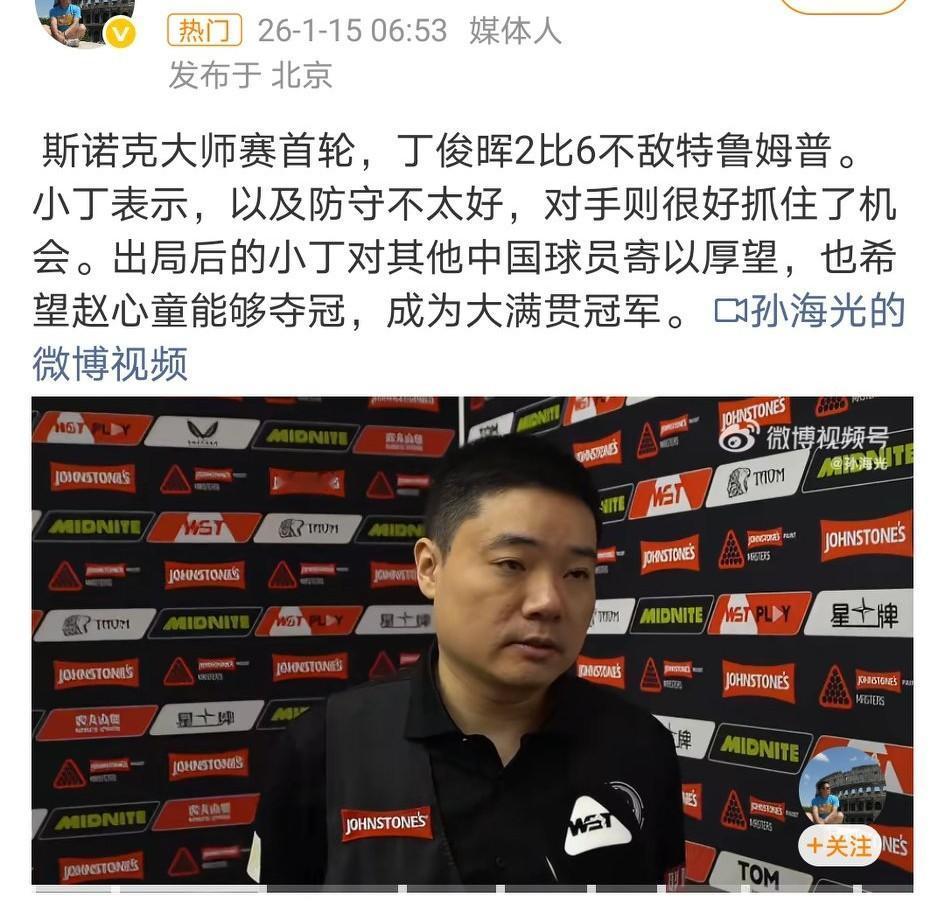 心态很坦然了,中国斯诺克一哥,已再无昔日王者霸气了。 相比75三杰,丁俊晖还很年轻,但他的重心已不在台球上了。 如果不算冠军联赛,之前2020年-2022年丁俊晖对阵世界前十六是九连败,现在丁又是八连败了,下个月输霍师傅将是九连。不过之前那次用了一年三个月(2020.11-2022.2),这次只用半年。