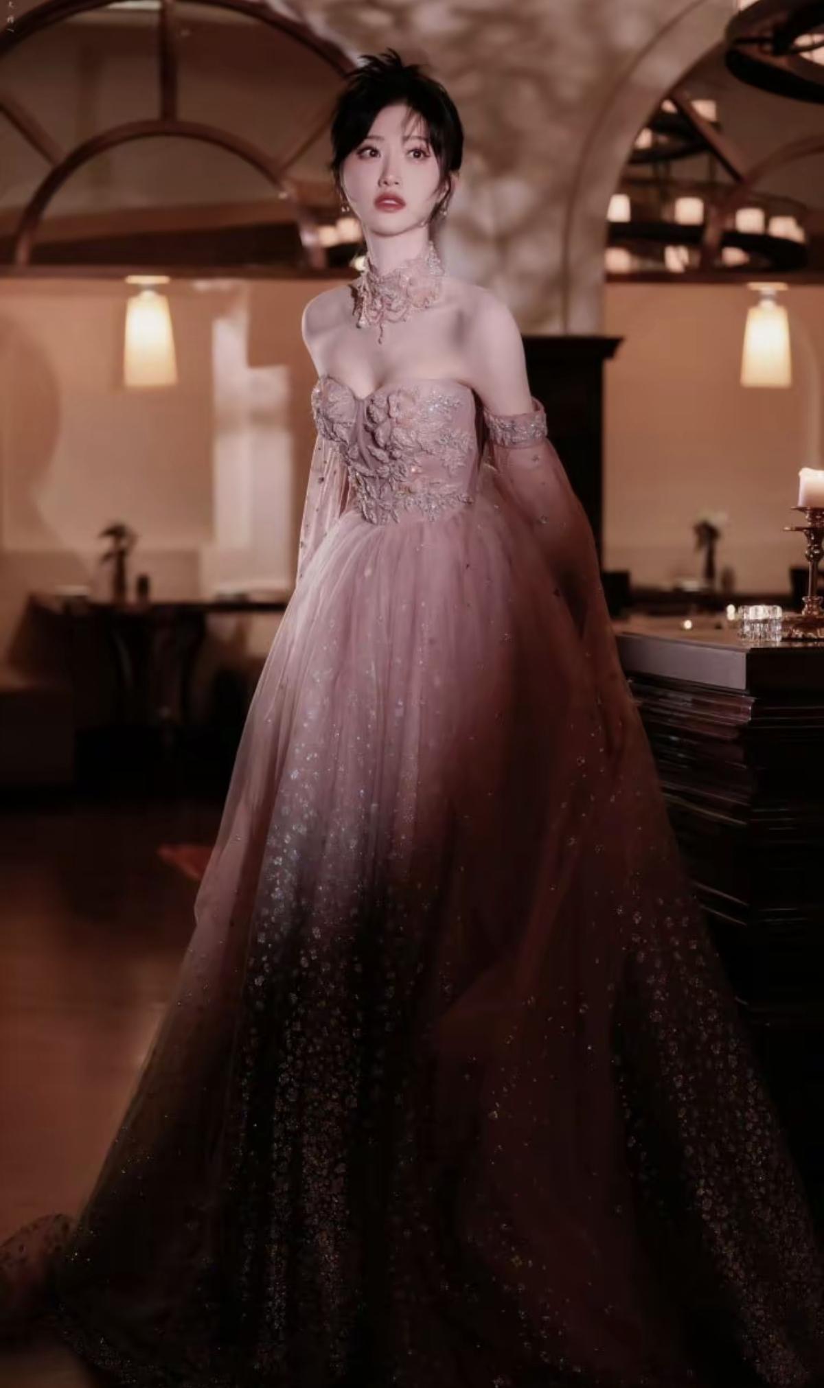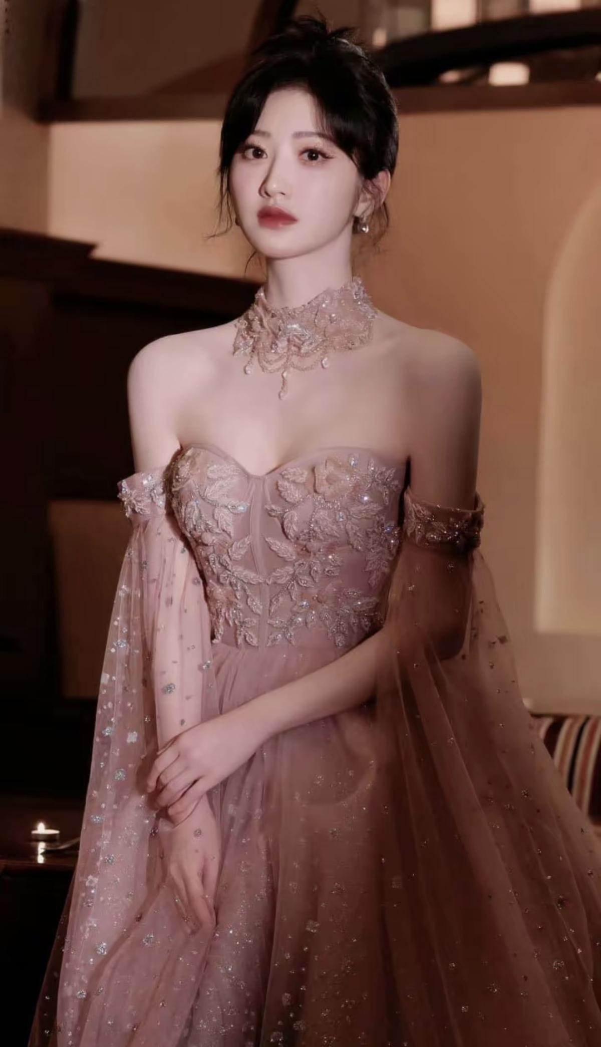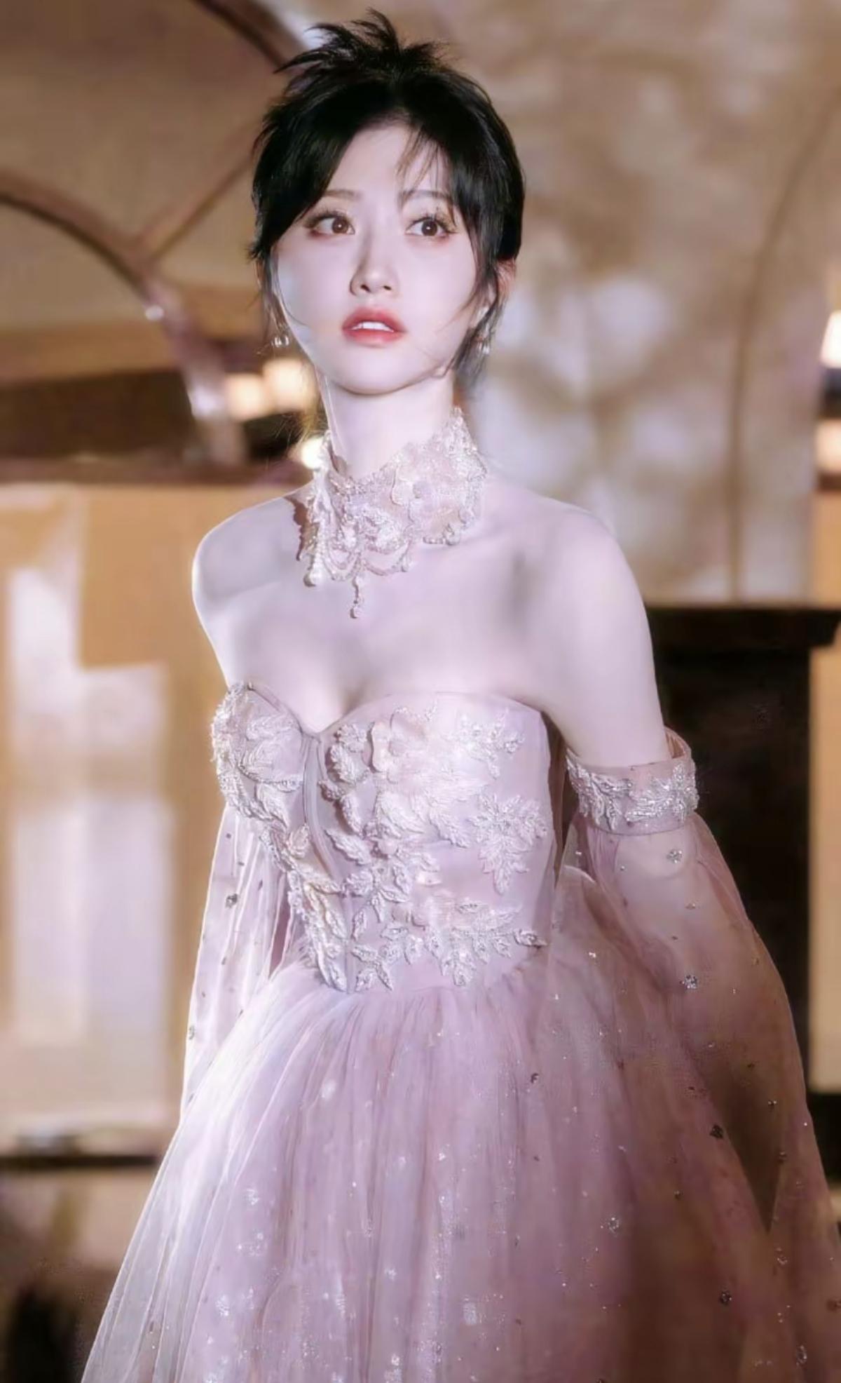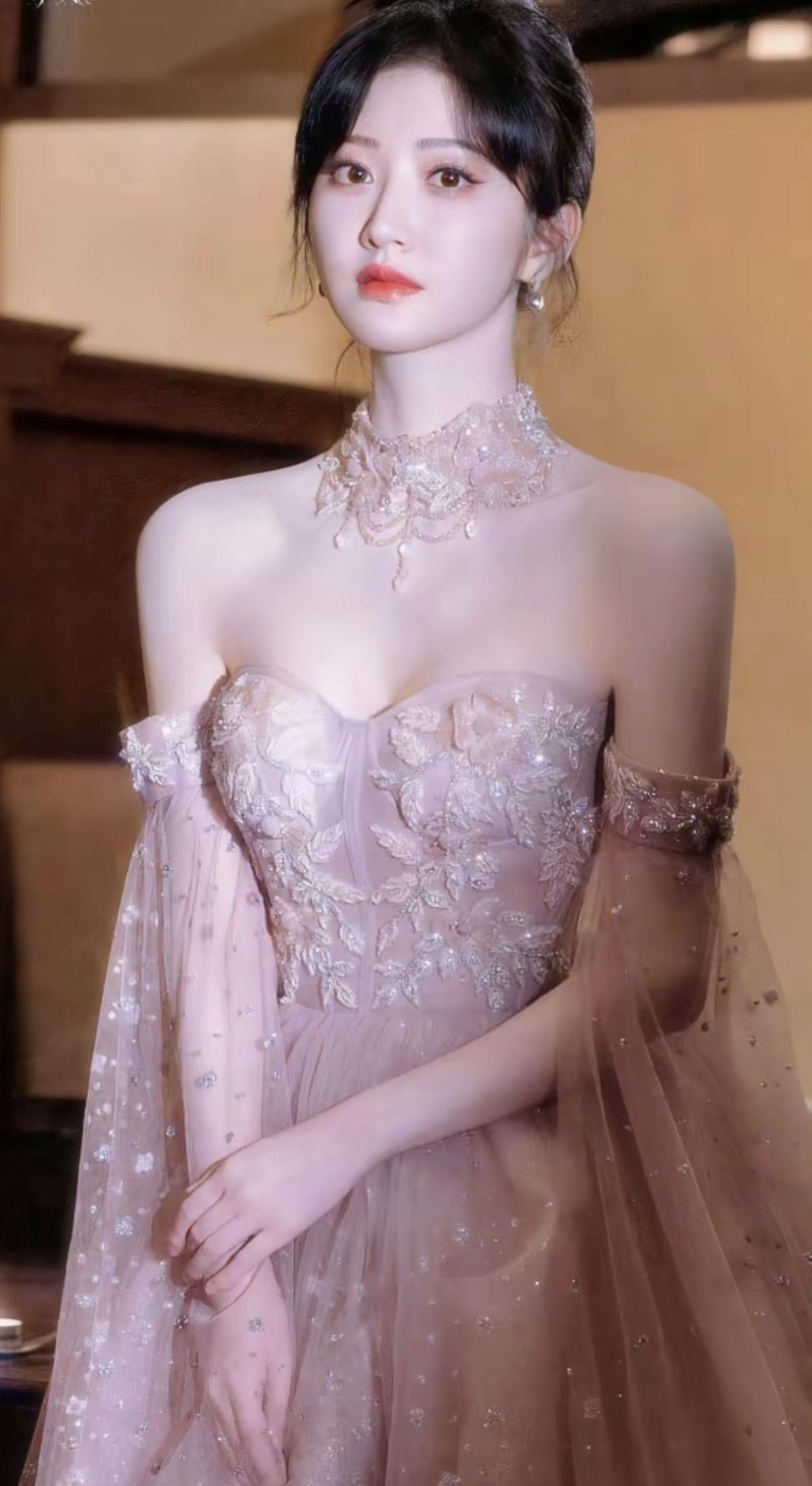 景甜这一身造型精准拿捏“温柔高级感”,粉雾色低饱和色调自带柔光滤镜,抹胸设计搭配镂空颈饰,既勾勒肩颈线条又保留了少女的柔婉气质[赞][加一][给力]娱乐明星