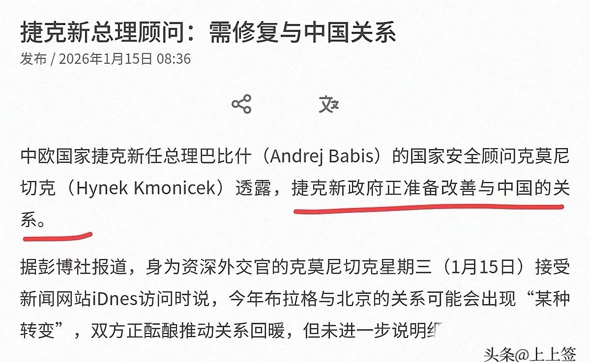 1月15日,根据外媒报道,捷克新任总理巴比什的国家安全顾问克莫尼切克表示,捷克新政府正准备改善与中国的关系。如果我们缺席中国市场,那将是毫无意义的。当然,我们必须以一种安全、且对我们有利的方式进入中国市场。 捷克统计局数据显示,2025年1—11月对华出口已达22.4亿美元,同比增长18%,其中汽车零配件和精密机床占七成,足见双边贸易热度未减 。 巴比什在12月议会竞选期间曾承诺“预算先顾民生”,如今改口强调“必须进入中国市场”,被解读为财政现实所迫:捷克国库赤字率预计2026年将触顶3.9%,吸引外资成减压唯一捷径 。 布拉格经济大学最新调研指出,若捷克企业能借“17+1”平台扩大对华出口,可在三年内新增1.2万个技术岗位,并降低对德国单一市场48%的依赖度 。 不过,捷克国内安全部门仍对5G招标、关键基础设施投资保持审查,克莫尼切克也坦言“不会为了订单牺牲安全”,意味着未来合作将更多采用“小型试点+分阶段放开”模式,而非一次性大单 。 巴比什的转向并不突然,经济数字摆在面前:扩大对华出口是减赤字、稳就业成本最低的一条路;只要布拉格把安全审查规则写清楚,企业就能在可控范围内做大蛋糕,这比空谈价值观更符合选民口袋里的实际利益。