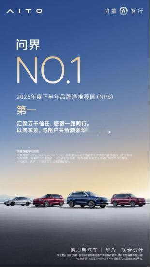 杰兰路 2025 下半年报告显示,问界包揽品牌 NPS、发展信心指数、30 万元以上品牌百人青睐指数三项第一,成为首个连续三次斩获发展信心指数第一的品牌。旗下双旗舰表现亮眼,问界 M9 连续四期蝉联车型 NPS 冠军,累计 20 个月稳居 50 万元级销量榜首,交付超 26 万辆且保值率四连冠;首次参评的问界 M8 拿下车型 NPS 第二,上市 8 个月交付破 15 万辆稳坐 40 万级冠军。2025 年问界全年交付超 42 万辆,12 月单月交付超 5.7 万辆创纪录,全系累计交付超 97 万辆,依托华为领先智驾与智能座舱技术,以销量口碑双丰收领跑高端新能源赛道。