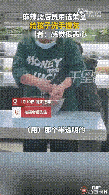 “被恶心到了!”一名男子在浙江宁波慈溪一家麻辣烫店吃饭时,看见一位服务员居然当着所有顾客的面,用挑菜的盆给孩子洗手搓灰,顿时感到非常地震惊。 对此男子表示,"被这一幕恶心到了,如此不注重卫生,以后不会再去这家店。"网友看完这一幕,都觉得这名男子说得对,这样的店铺迟早是会倒闭的。 既然是餐饮店,那最应该注重的就是卫生,因为如果连卫生都无法保障,那么其他的服务,想必也不会好到哪里去的。 这位服务员不仅用挑菜盆给孩子洗手搓灰,还当着所有顾客的面这样做,简直是不将顾客放在眼里,难道在她心里,这样做是没错的?或者所有顾客都不会反对? 在干净卫生的家庭里,切菜和切肉的刀,洗脸和洗脚的盆,都是不一样的,相信这是所有爱干净的人的共识,不需要特意交代,可见这家餐厅确实是太疏忽大意了。 餐饮店开门做生意,卫生就是底线中的底线,这可不是随便说说的事。挑菜盆是装食材给顾客吃的,拿来搓孩子手上的灰,想想那些即将下锅的菜曾放在同一个盆里,谁能不膈应?顾客花钱是来吃放心饭的,不是来受这份恶心的。 店家要是连这种基本的卫生常识都不管不顾,说明管理上根本没把顾客健康当回事。服务员敢这么明目张胆,大概率也是店里平时就没好好强调卫生规范,才让她觉得这么做没毛病。 餐饮行业竞争这么大,大家可选的店多了去了,谁会愿意光顾一家连卫生都保障不了的店?卫生搞不好,口味再特别、服务再热情也白搭,毕竟没人想拿自己的健康冒险。各位读者你们怎么看?欢迎在评论区讨论。