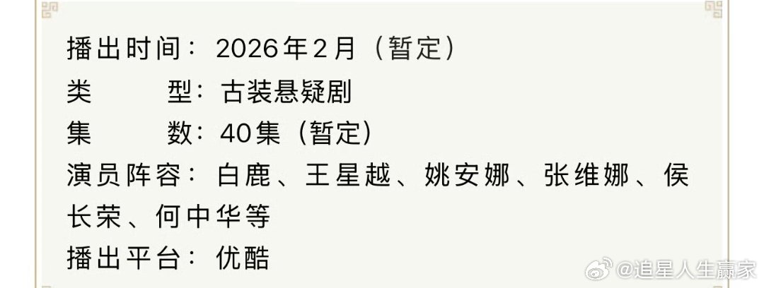 白鹿、王星越《唐宫奇案之青雾风鸣》开启播前招商,预计在2月优酷播出!!