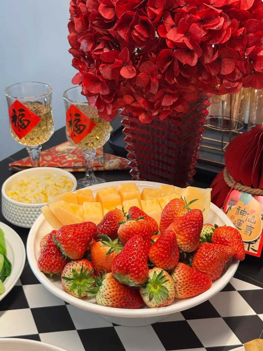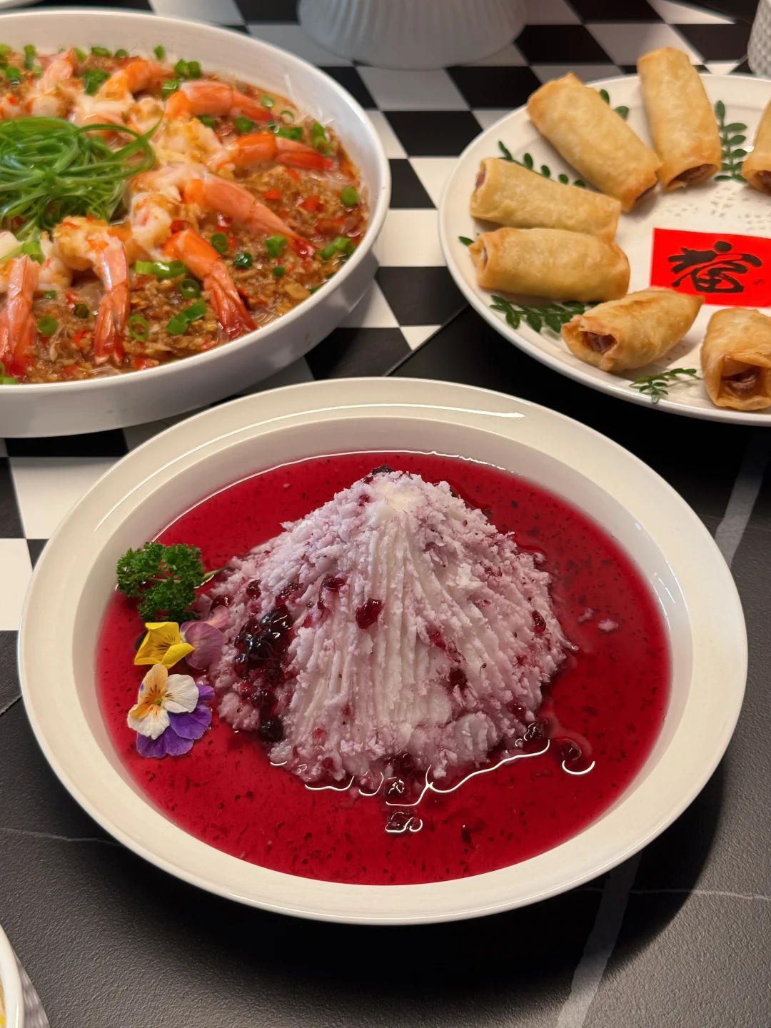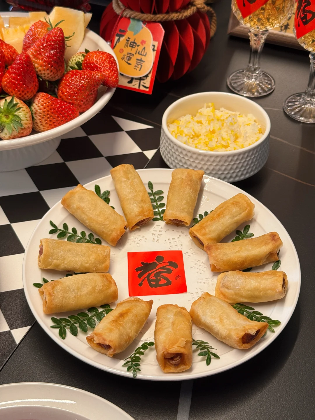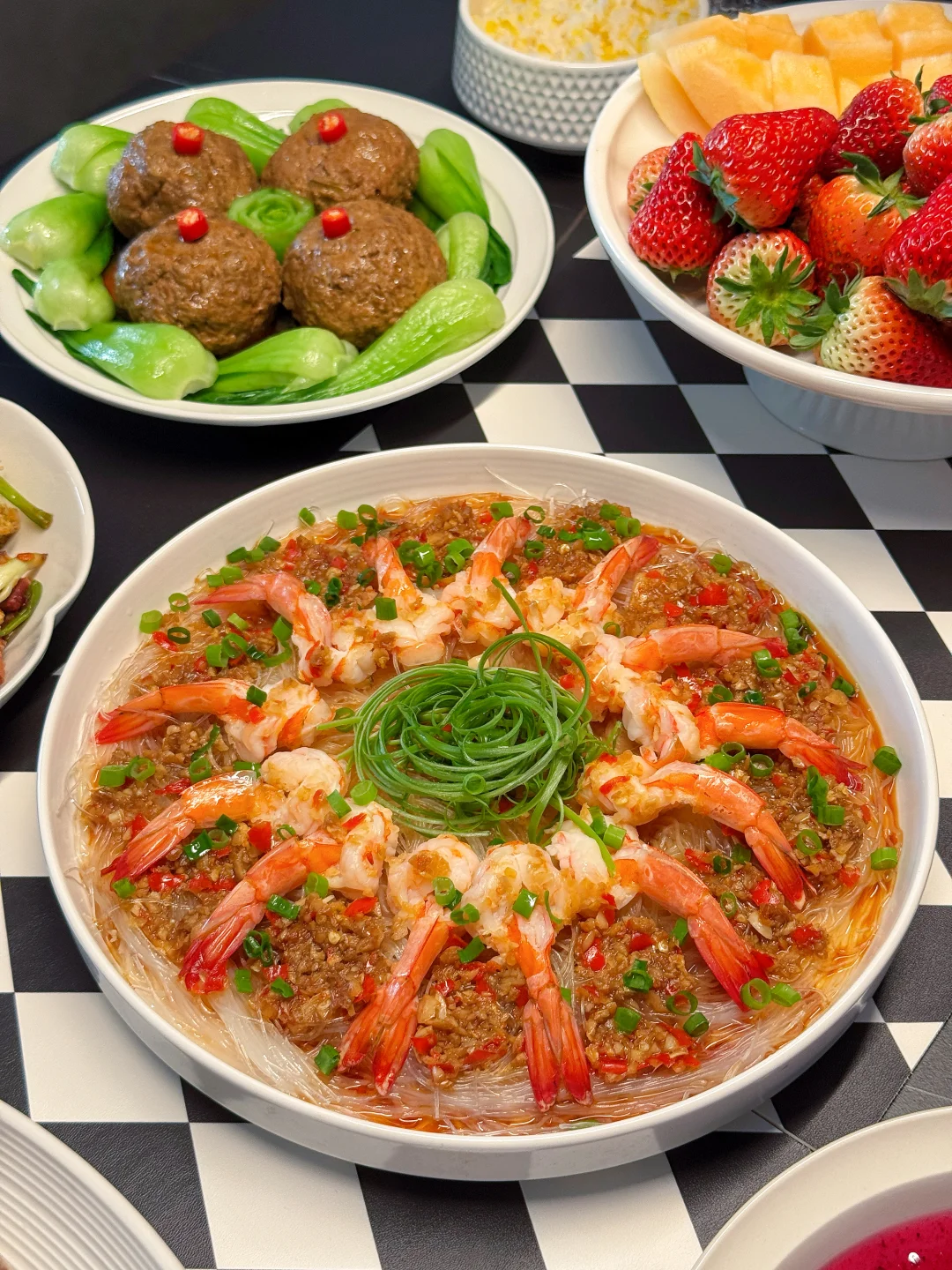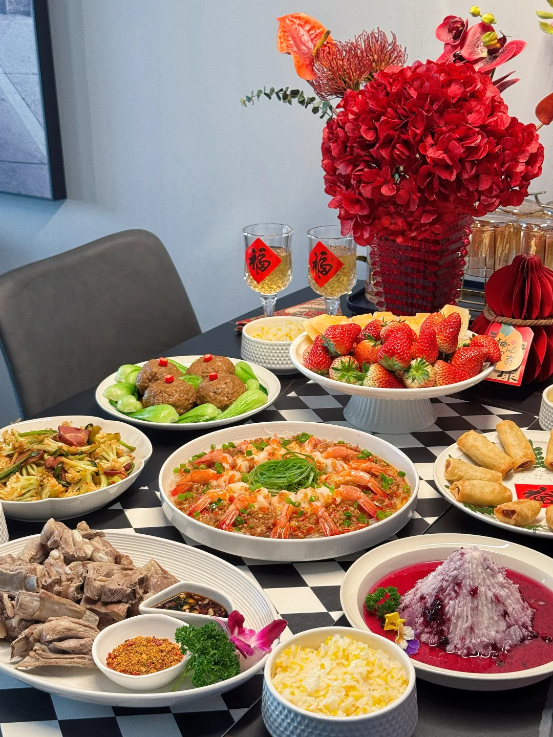 不用去挤餐厅!在家支棱一桌热乎的,和朋友们边吃边聊,暖气开得足足的,仪式感和烟火气全都有~幸福感直接爆棚! 今日菜单: [庆祝R]蒜蓉粉丝虾 [庆祝R]四喜丸子 [庆祝R]清炖羊排 [庆祝R]干锅花菜 [庆祝R]春卷 [庆祝R]蓝莓山药 [庆祝R]果盘