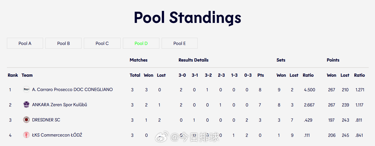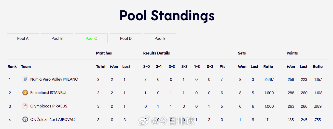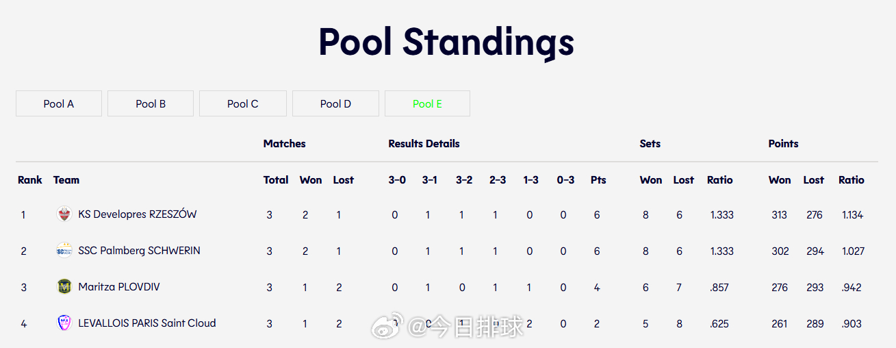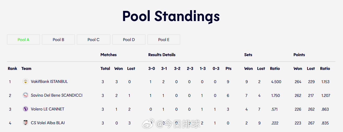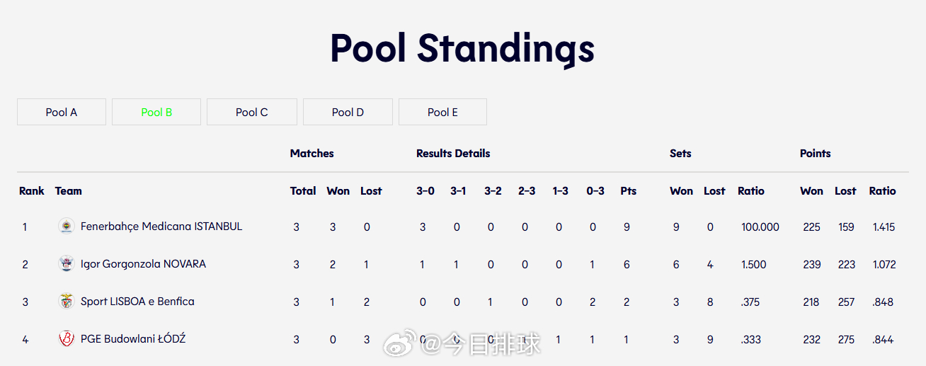 2026女排欧冠 本周正赛小组赛第4轮的竞赛日程(北京时间/主队在前):(* “+1”即为所示日期之第二天凌晨/中文语境的当晚后半夜)1月13日(二)+1 00:00 B组 土耳其费内巴切 vs 意大利诺瓦拉+1 01:00 B组 波兰罗兹建设 vs 葡萄牙里斯本与本菲卡1月14日(三)+1 00:00 A组 土耳其瓦基弗银行 vs 罗马尼亚阿尔巴布拉日+1 01:00 E组 波兰热舒夫 vs 法国巴黎勒瓦卢瓦+1 01:00 A组 意大利斯坎迪奇 vs 法国勒卡内+1 03:00 C组 意大利米兰 vs 塞尔维亚铁路工人+1 03:30 D组 波兰罗兹ŁKS vs 土耳其泽仁体育1月15日(四)+1 00:00 C组 土耳其伊萨奇巴希 vs 希腊奥林匹亚科斯+1 01:00 E组 德国什未林 vs 保加利亚普罗夫迪夫+1 03:30 D组 意大利科内利亚诺 vs 德国德累斯顿