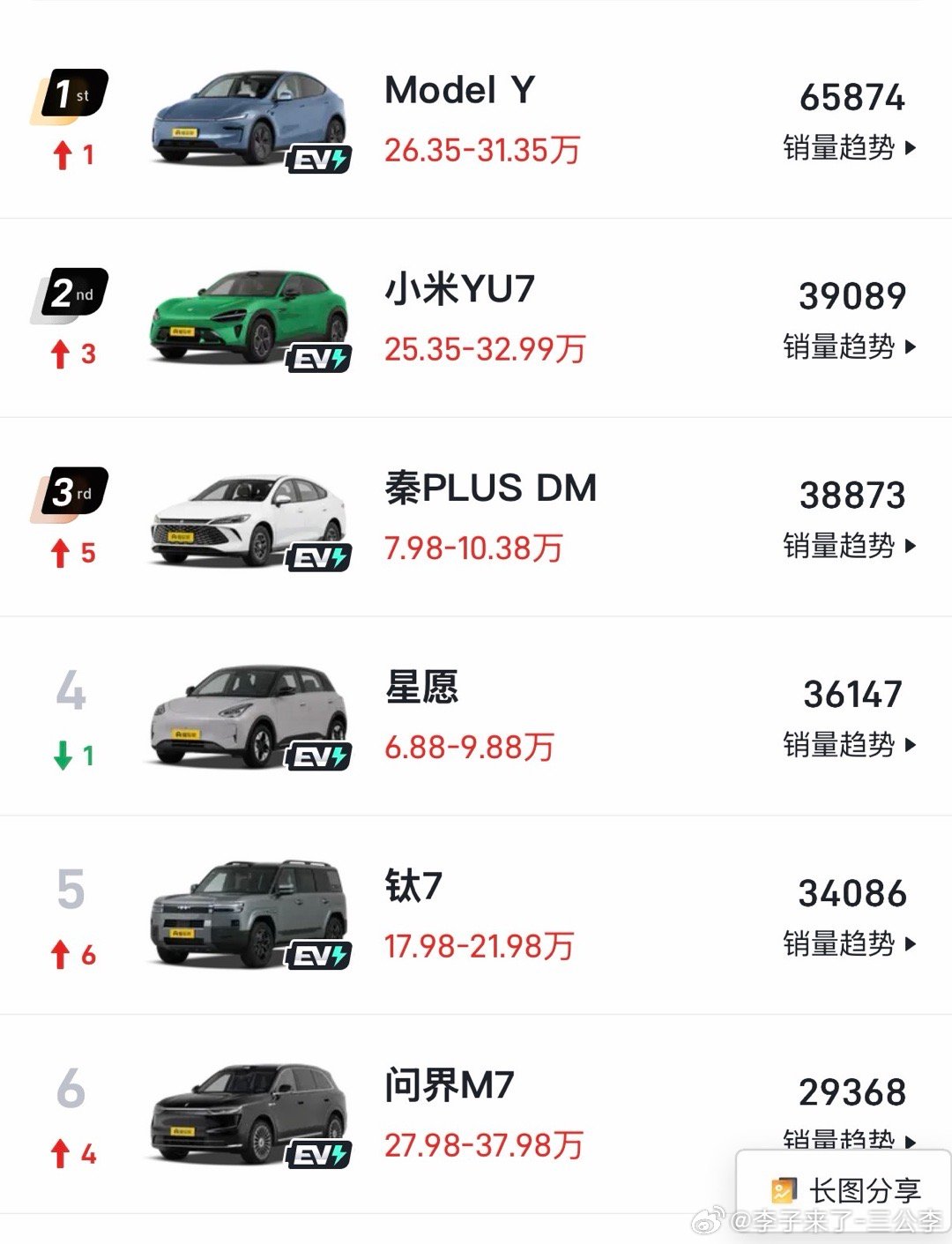 钛7真猛啊~属于现象级产品了现在一个月能卖3万多台的SUV真的没几个!方程豹稳住 你看看3万销量附近的SUV 全都是顶级爆款Model y 小米YU7 钛7 问界M7能跨进这个区间需要点真本事三十而立·共赴新程方程豹新势力品牌增速第一