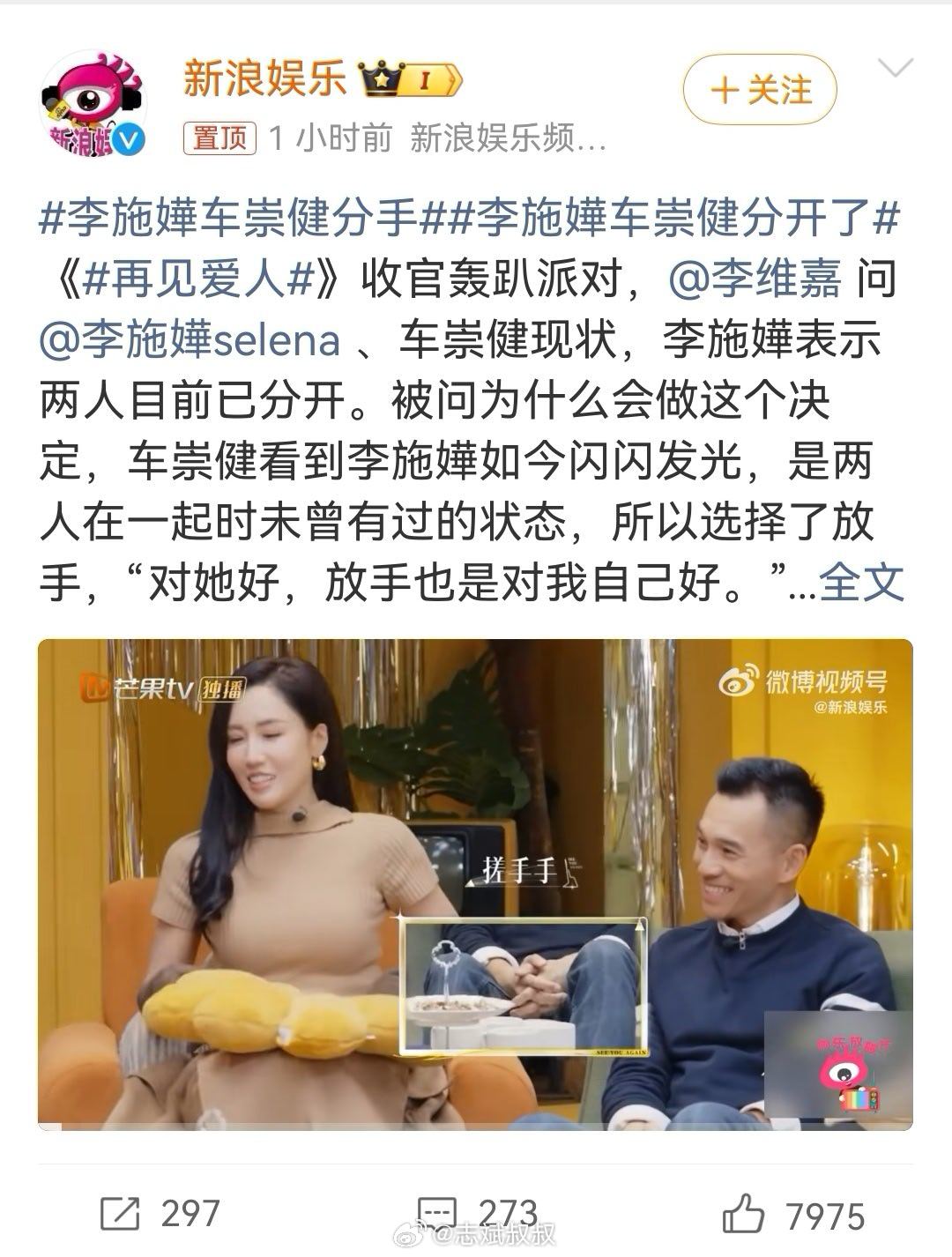 李施嬅车崇健分手 李施嬅和车崇健分开了我觉得李施嬅的决定很正确,李施嬅跟他一起这些年,这男的很多做法都不妥当,也是刷新了我对男同胞所作所为的下限,涨见识了。李施嬅跟他在一起多内耗啊,这女生性格和耐性也是真的好 北京