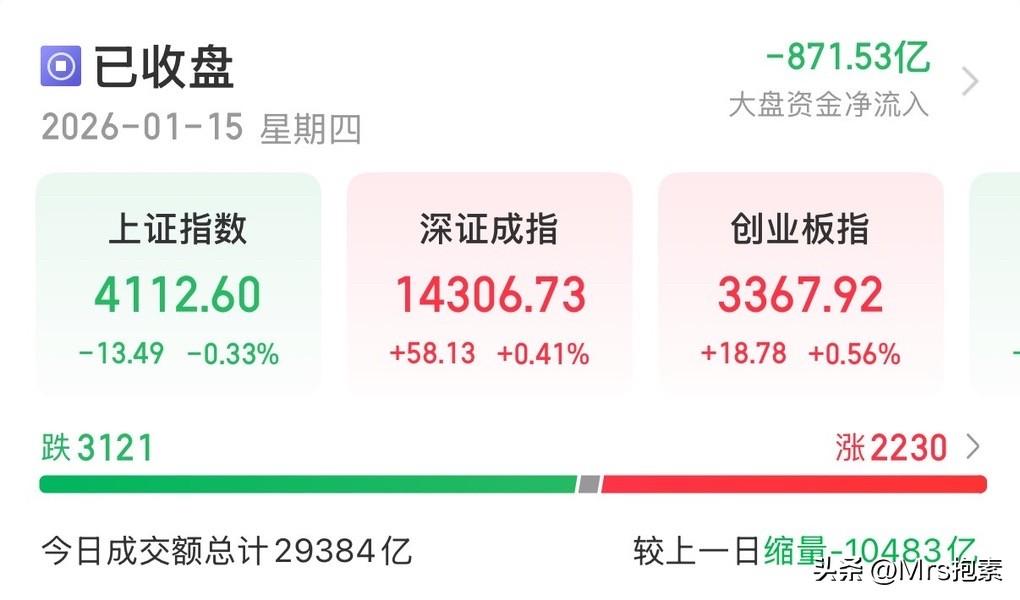 每日大盘走势推演:利好多多,沪市大盘或止跌企稳,关注算力硬件和自动驾驶 一、今日盘面信息 大幅缩量,三大股指涨跌不一,沪指跌0.33%,深证成指涨0.41%,创业板指涨0.56%。全市场成交额29113亿元,缩量10754亿元。整体减少了26.28%,市场成交热度有所降低 指数方面:目前沪指处于盘整,深证成指为上升趋势。 资金方面:大盘净流出870亿,沪深主力资金净流出200亿,比昨日大幅萎缩。 二、今日盘后消息均为大利好 1⃣️两部门:自2026年1月1日起两年内,对境外机构投资境内债券市场取得的债券利息收入暂免征收企业所得税和增值税。继续加大对外国资本开放的力度,吸引资本投资中国。 2⃣️人民银行下调各类结构性货币政策工具利率0.25个百分点,各类再贷款一年期利率降至1.25%,进一步助力经济结构转型优化。 3⃣️今年降准降息仍有空间。 4⃣️单设一项民营企业再贷款,额度1万亿元,重点支持中小民营企业。 5⃣️美国政府将批准向中国出售H200人工智能芯片;伯恩斯坦:将闪迪目标股价从300美元上调至580美元。 三、明日大盘走势研判 调比例+压盘,降温信号明显,今日两大主流板块商业航天和Ai应用高标股纷纷跌停。 盘后利好消息纷至沓来,且均为重磅利好,对中国经济对相关板块形成利好。 综合判断,“降温”信号,主要针对短线涨幅过大的方向,而非否定“慢牛”趋势本身。大盘或将暂时震荡休整,结构性行情有望延续。 预计明日:继续维持震荡格局,大盘收十字星可能性较大。 四、操作策略及方向 谨慎抄底搏反弹,特别是商业航天和Ai应用,等彻底企稳,今日大涨的贵金属有色等不宜再追,可关注存储芯片、算力硬件和自动驾驶板块。 免责声明:个人观点备忘,不构成投资建议,股市有风险,投资需谨慎!