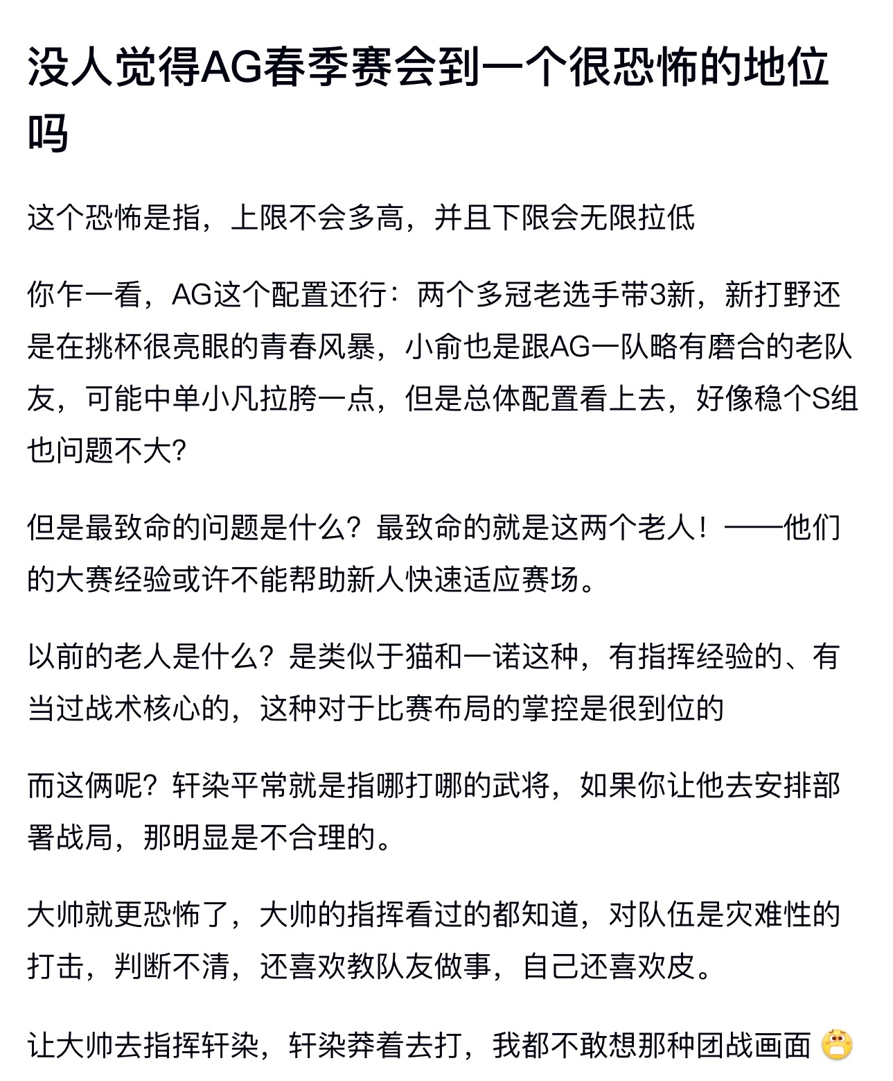 kplk吧热议没人觉得AG春季赛会到一个很恐怖的地位吗