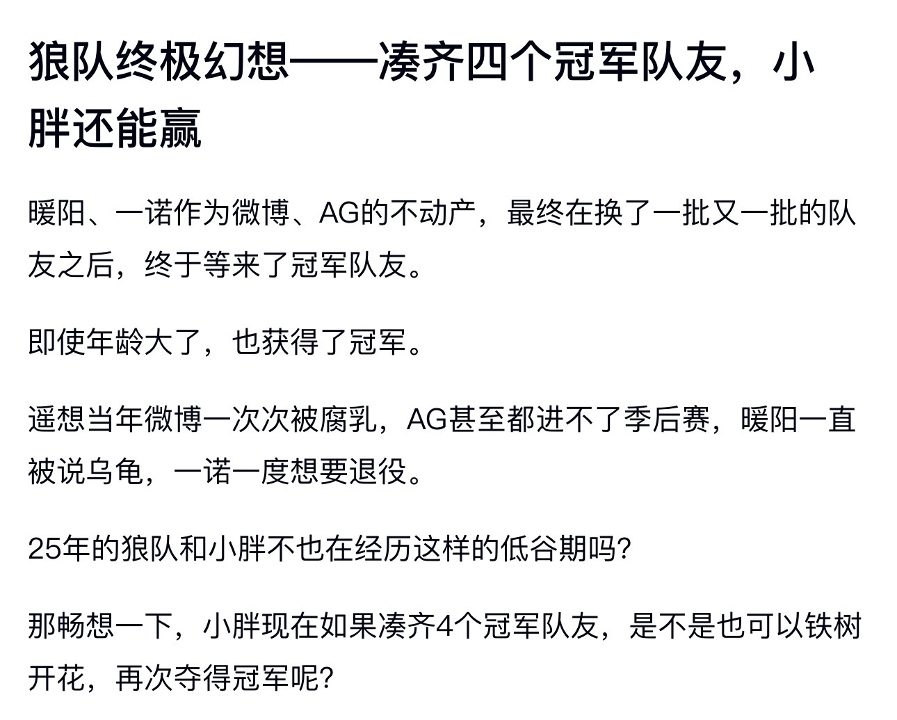 kpl k吧热议 狼队终极幻想——凑齐四个冠军队友,小胖还能赢。