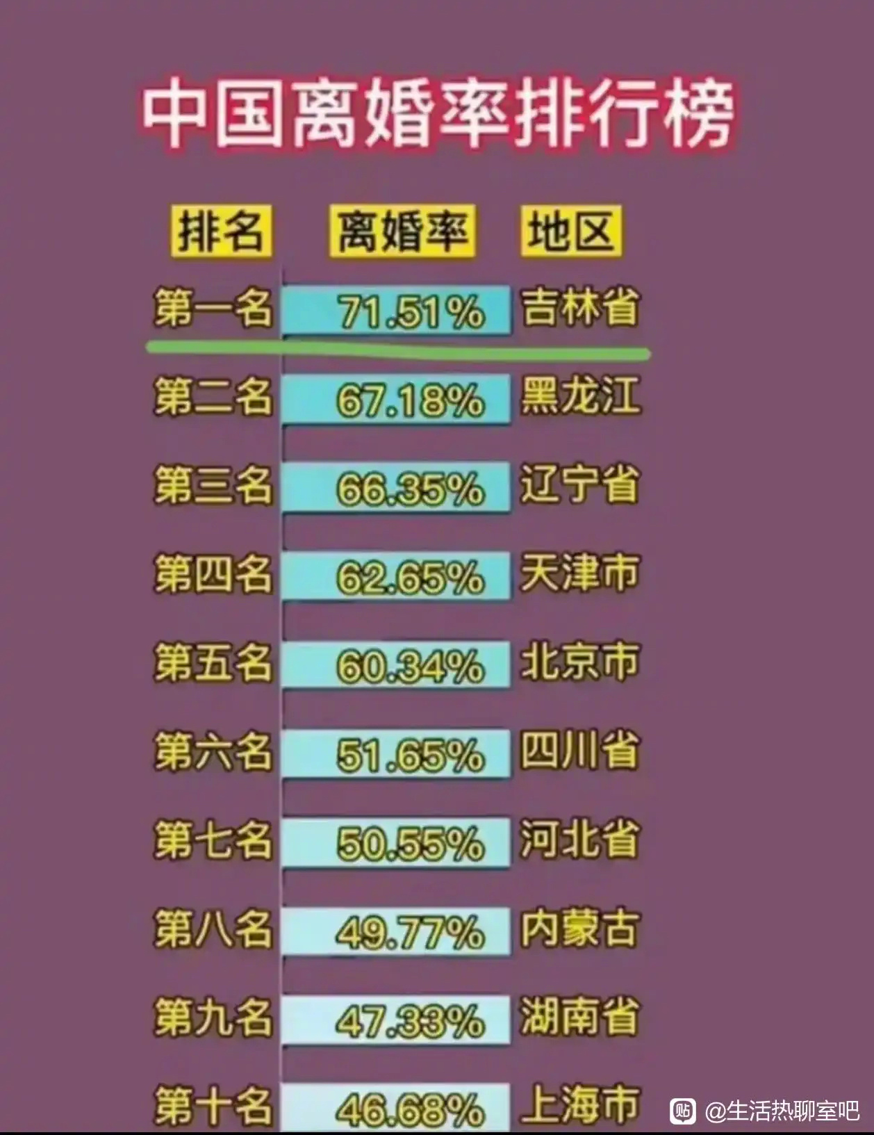中国离婚率排行榜