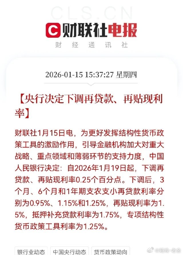 太好了!“王炸”利好来了!明天预计要飞了吧!央行重大利好政策来了!关键时刻你永远可以相信咱央妈的力量,今日刚刚给了市场9000亿麻辣粉,这又4000亿元直接上“两新”,且下调贷款和再贴现利率025个百分点,盘后央行火力全开了,释放这么多利好政策,意欲何为,直白点就是告诉市场,“家底厚、工具多、能抗事”,预计央行的这份沉甸甸的暖意,明日能激发投资者的投资活力和积极性,这才是真正的大利好呀!明日!就在明日!股民们!要系好安全带!扶好扶手!预计要见证中大阳线拔地而起了吧!降息央行下调再贴现再贷款利率