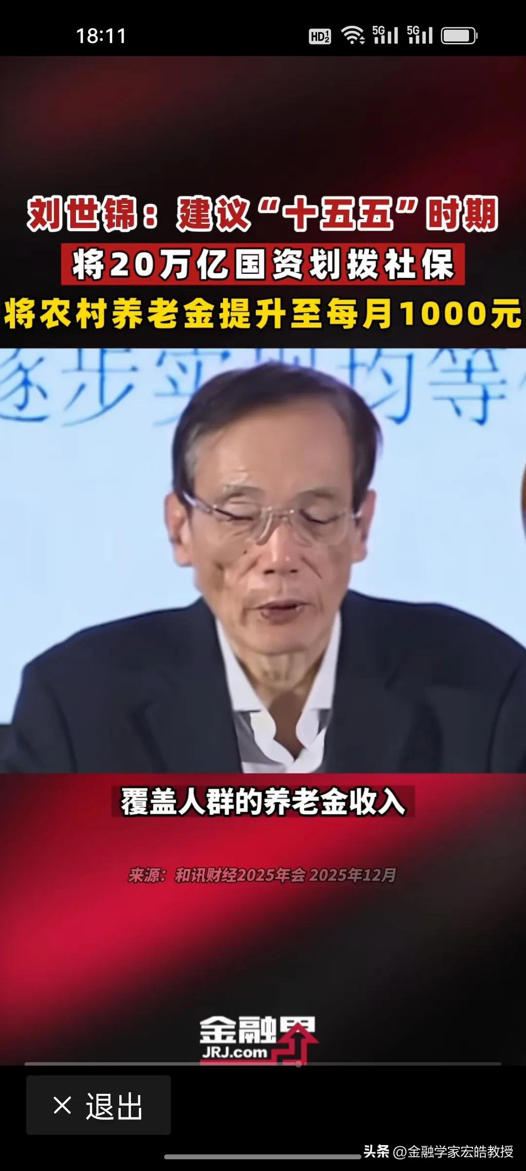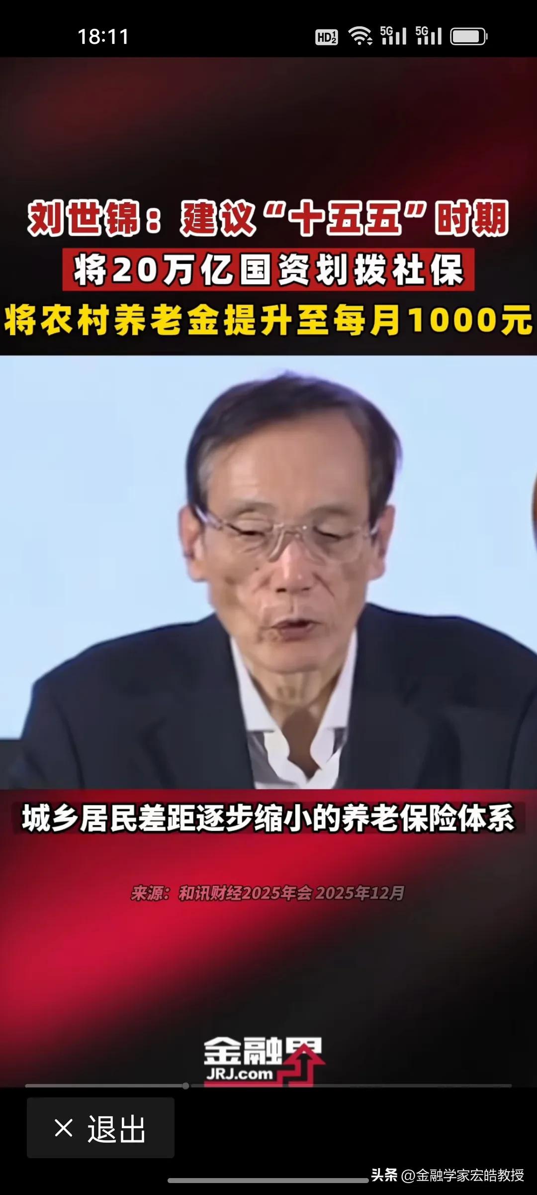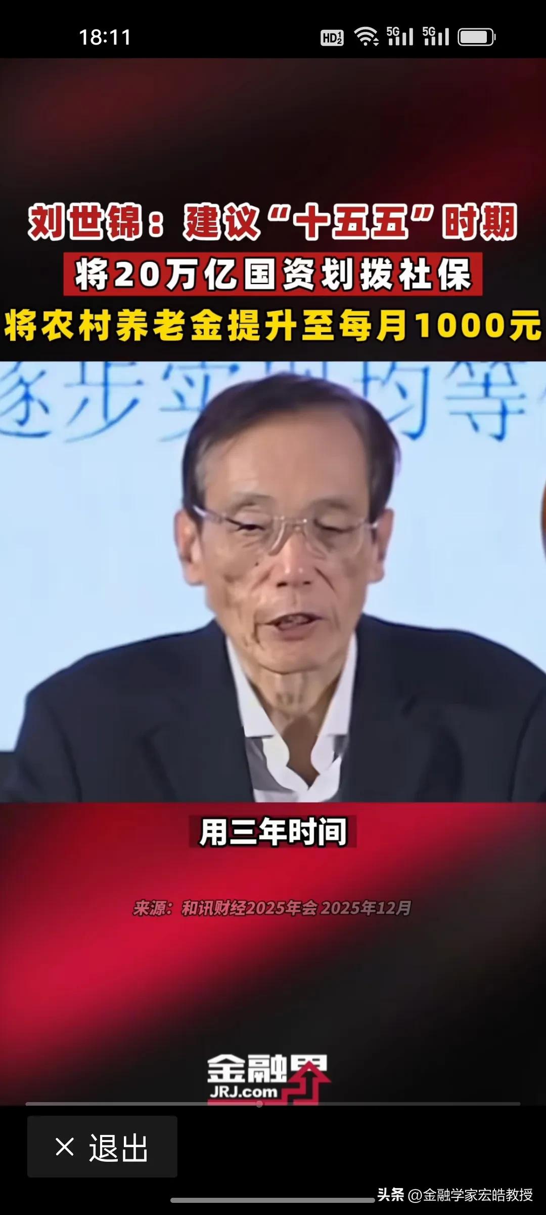 用国资反哺1.26亿农村老人养老!近期,国务院发展研究中心原副主任刘世锦提到给农村老人涨退休金的“两步走”方案值得借鉴! 刘世锦认为,在“十五五”期间,将两个十万亿国资划入社保基金,进入资本市场运作,建立城乡居民差距逐渐缩小的养老保险体系。第一个十万亿,从2025年起,用三年时间将老年人养老金从200多元涨到620元,第二个十万亿,用两年时间,从620元提高到1000元,与城镇职工养老金替代率基本持平。 今年国家要着力提振消费,扩大内需,1.26亿农村老年人的消费潜力还有待挖掘,但是每个月仅200多元的养老金,确实捉襟见肘,只能勉强维持生活,消费能力被严重抑制。如果养老金提高到1000元,那么预计拉动GDP增长约1.8万亿元,贡献年度增速1.2-1.5个百分点。这样既破解农村养老难题,又为扩内需注入强劲动力。 刘世锦的构想以国资反哺民生、以养老激活消费,尽显顶层设计智慧与民生温度!