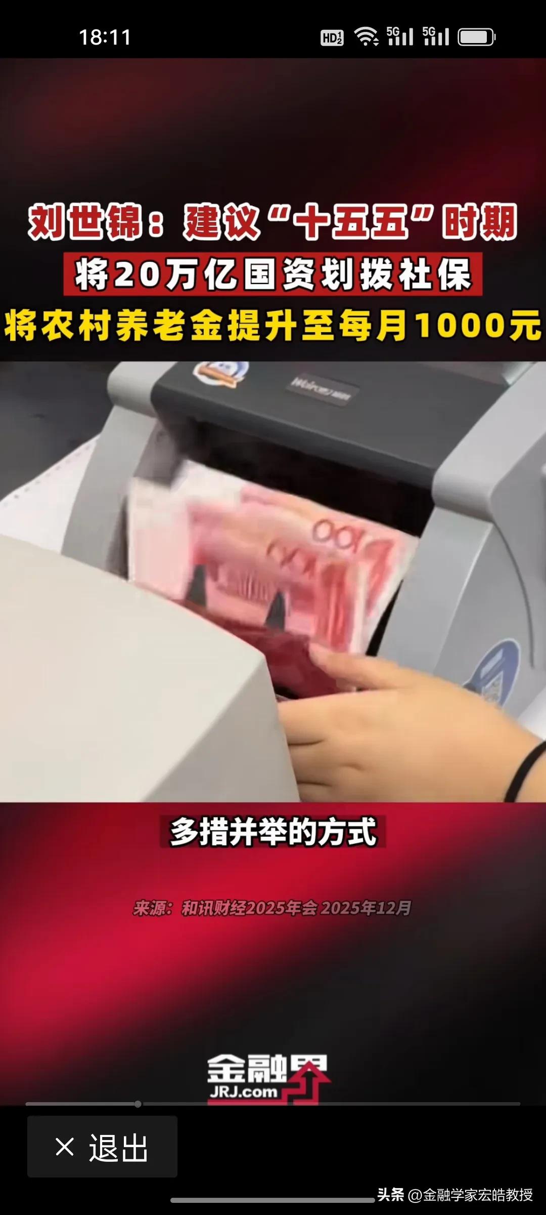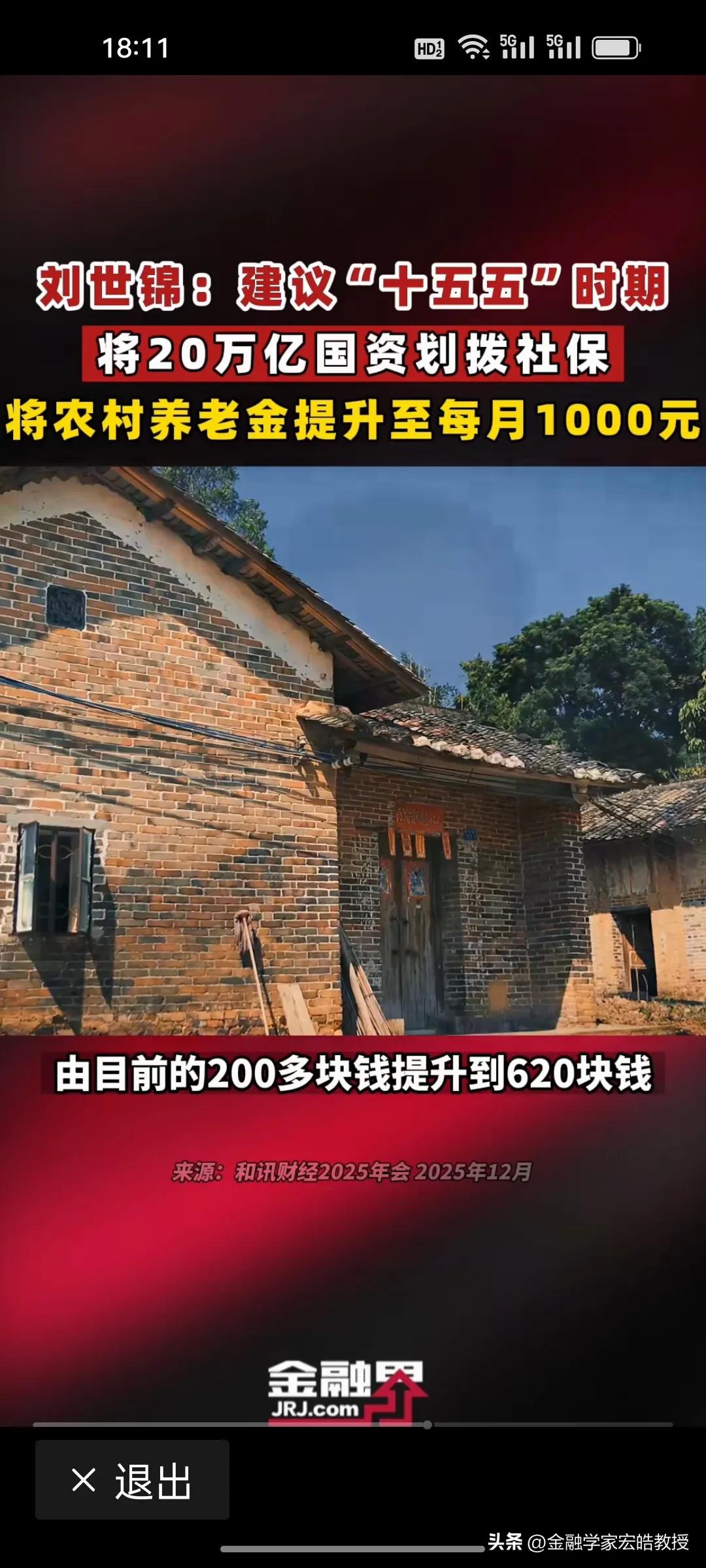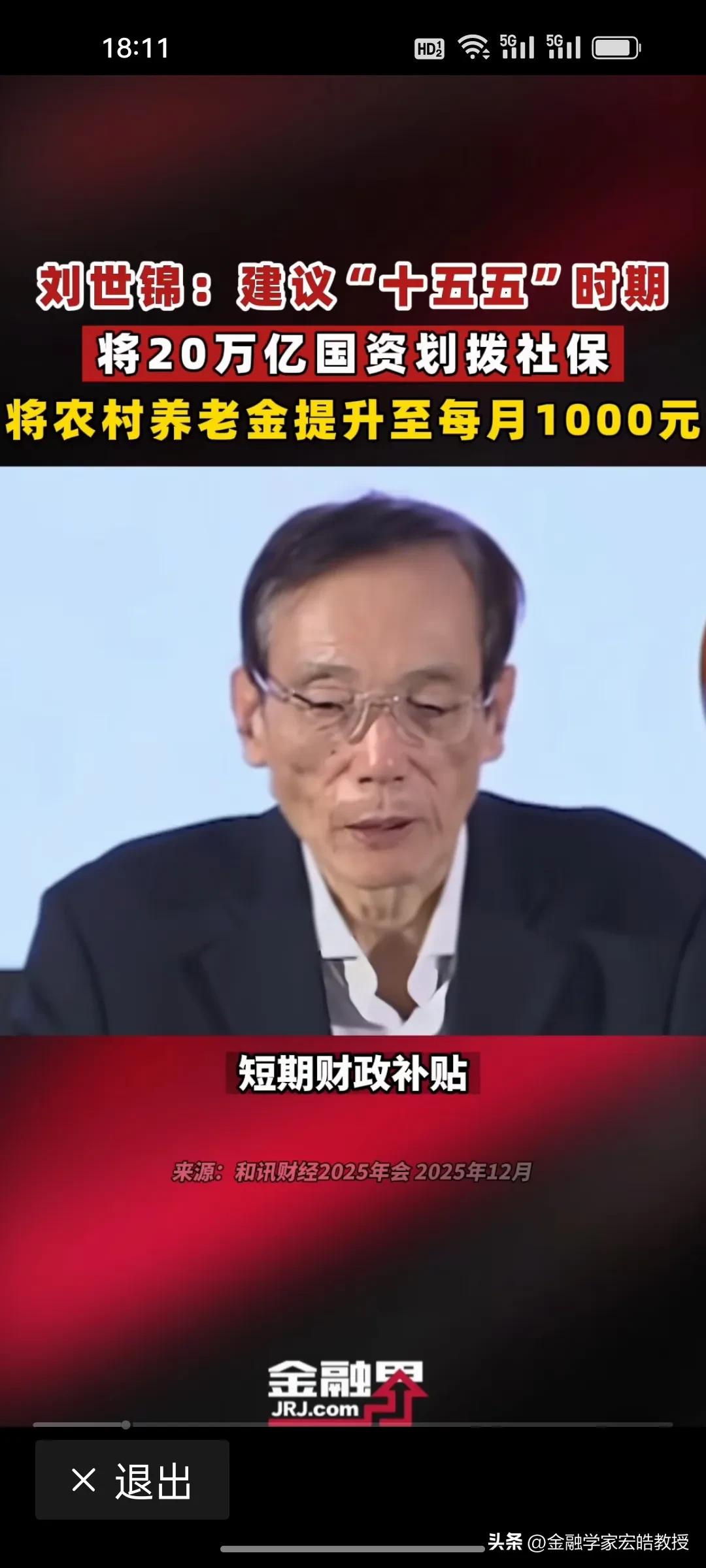 用国资反哺1.26亿农村老人养老!近期,国务院发展研究中心原副主任刘世锦提到给农村老人涨退休金的“两步走”方案值得借鉴! 刘世锦认为,在“十五五”期间,将两个十万亿国资划入社保基金,进入资本市场运作,建立城乡居民差距逐渐缩小的养老保险体系。第一个十万亿,从2025年起,用三年时间将老年人养老金从200多元涨到620元,第二个十万亿,用两年时间,从620元提高到1000元,与城镇职工养老金替代率基本持平。 今年国家要着力提振消费,扩大内需,1.26亿农村老年人的消费潜力还有待挖掘,但是每个月仅200多元的养老金,确实捉襟见肘,只能勉强维持生活,消费能力被严重抑制。如果养老金提高到1000元,那么预计拉动GDP增长约1.8万亿元,贡献年度增速1.2-1.5个百分点。这样既破解农村养老难题,又为扩内需注入强劲动力。 刘世锦的构想以国资反哺民生、以养老激活消费,尽显顶层设计智慧与民生温度!
