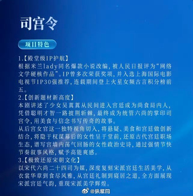 网传宋祖儿司宫令3月开机没想到宋祖儿的《司宫令》刚传出消息。3月份就能开机了啊,看得出来剧组在等宋祖儿的档期啦,这部剧的剧情和人设,都直戳粉丝和观众的心巴,期待宋祖儿能早日进组啦~网传宋祖儿将在3月进组新剧