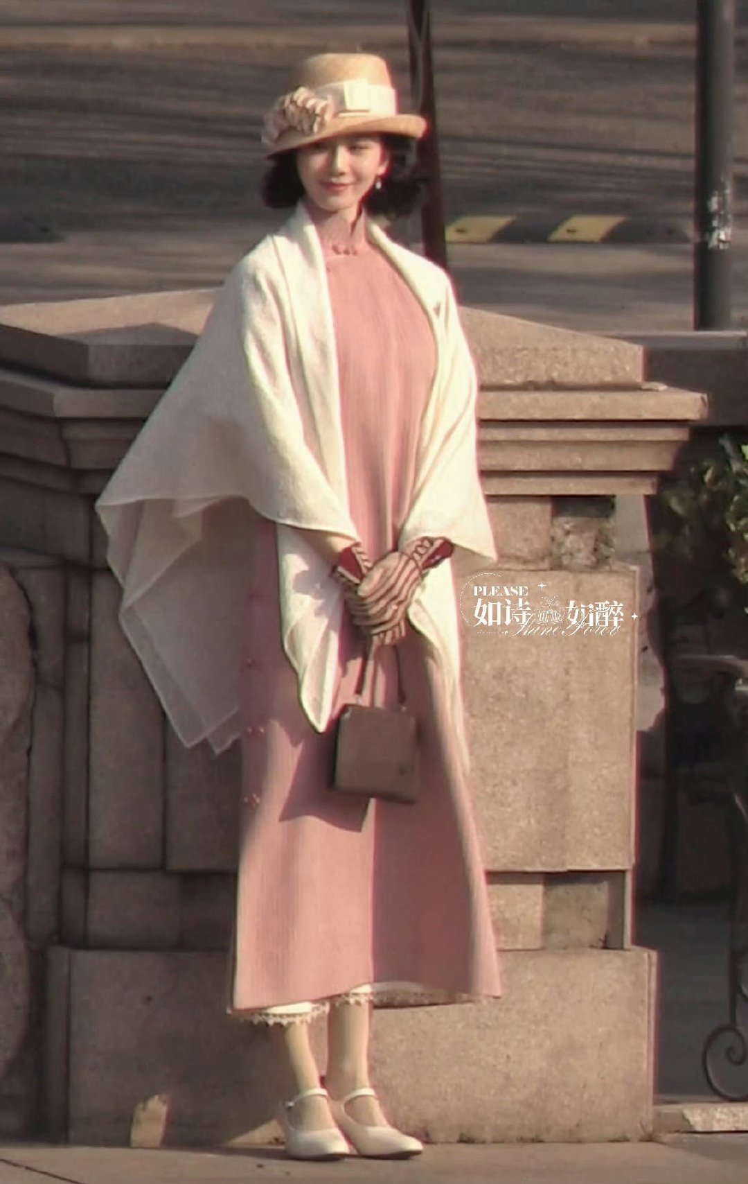 刘诗诗民国粉裙造型刘诗诗粉裙白披肩好适合民国造型