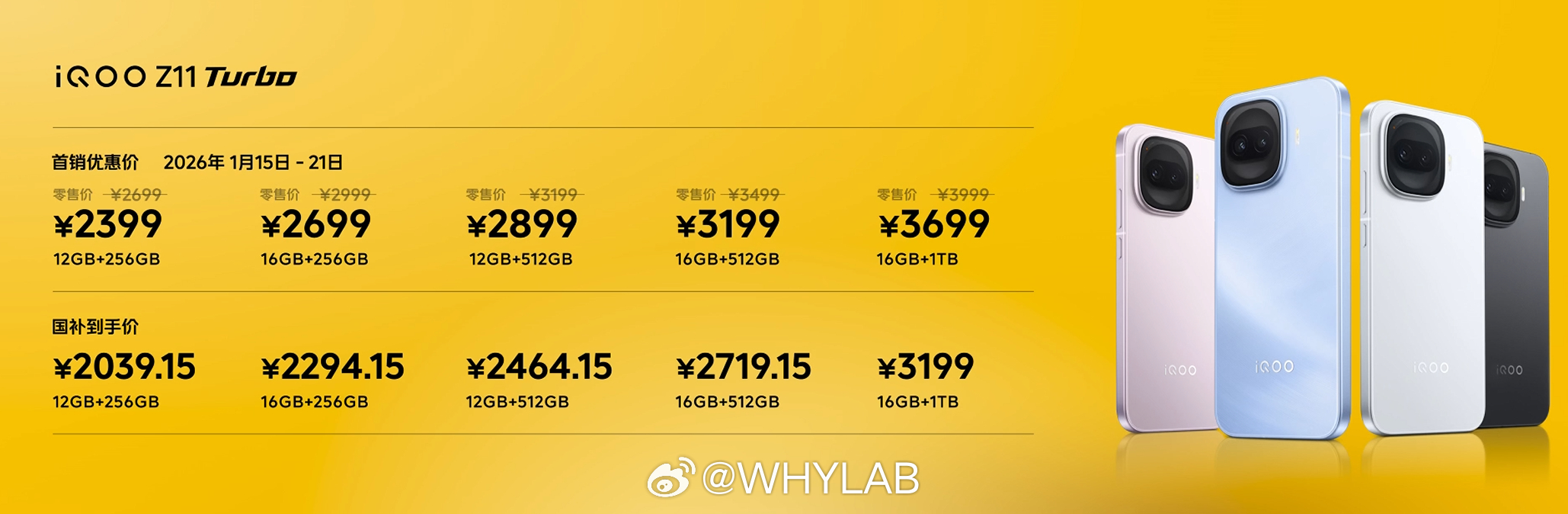 iQOO Z11 Turbo 价格来了,首销减 300,2399 起,国补后 2039 起,配置看图二,性价比怎么样?12+256GB 售价 2399 、12+512GB 售价 2699、16+256GB 售价 2899、16+512GB 售价 3199、16+1TB 售价 3699。