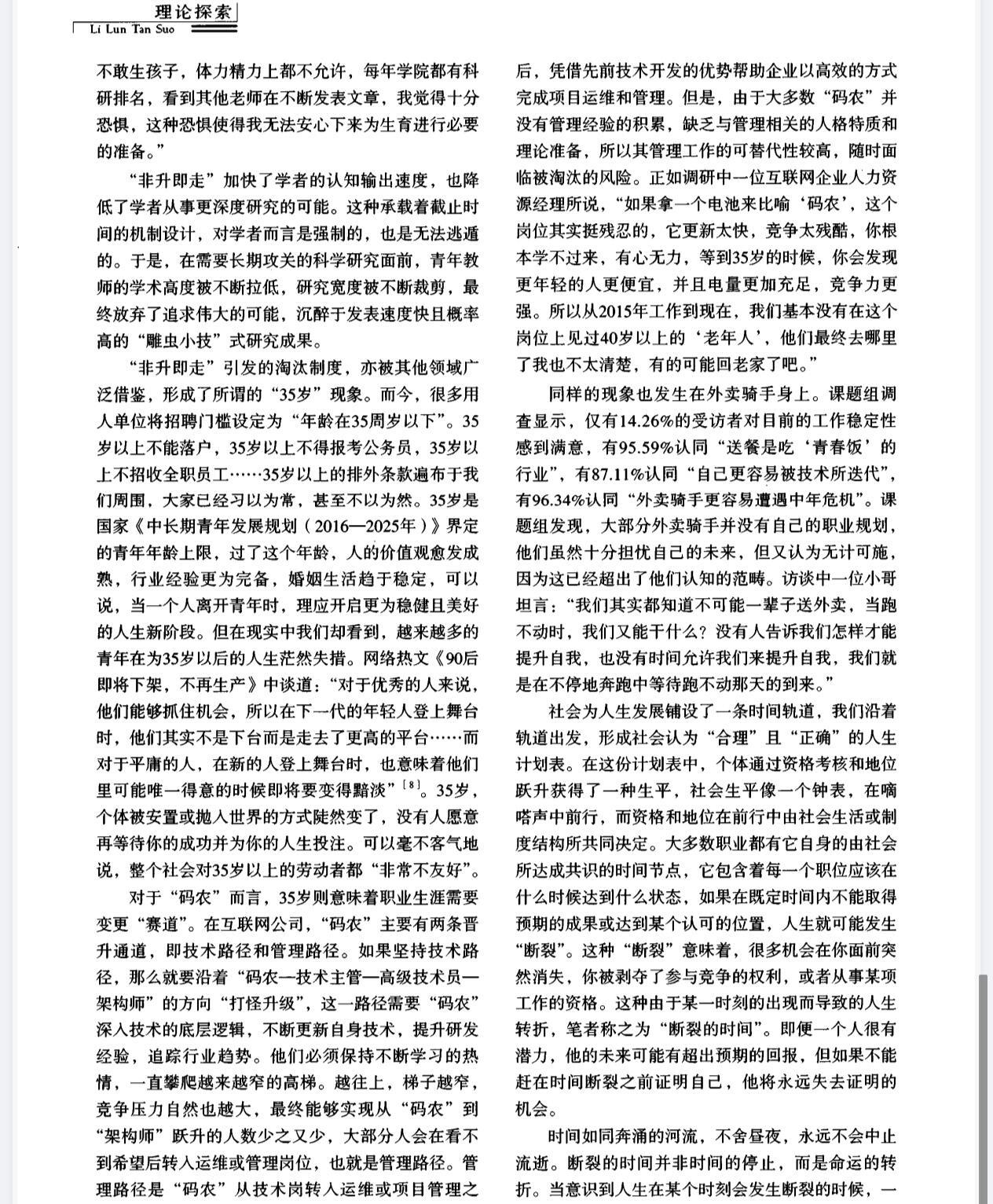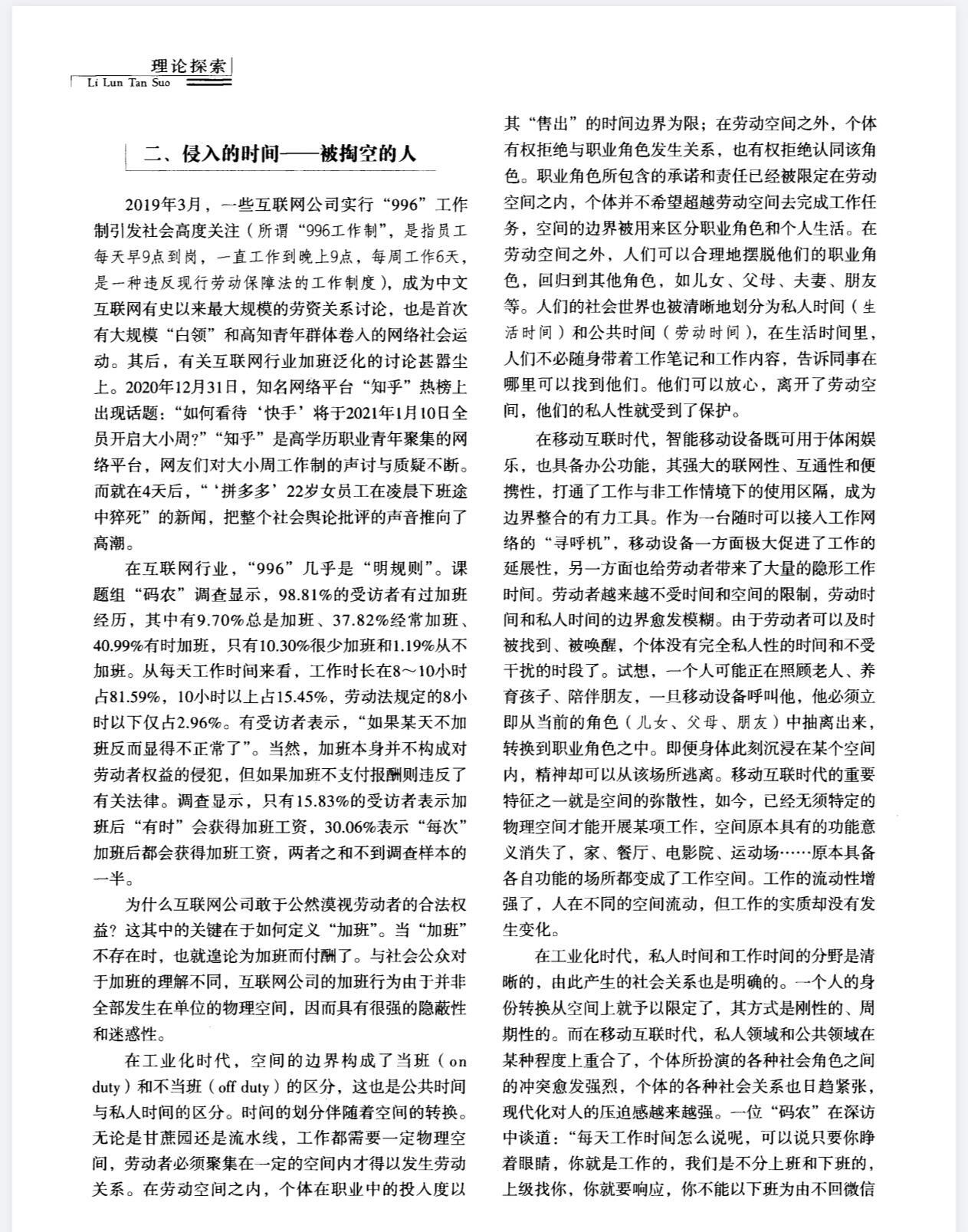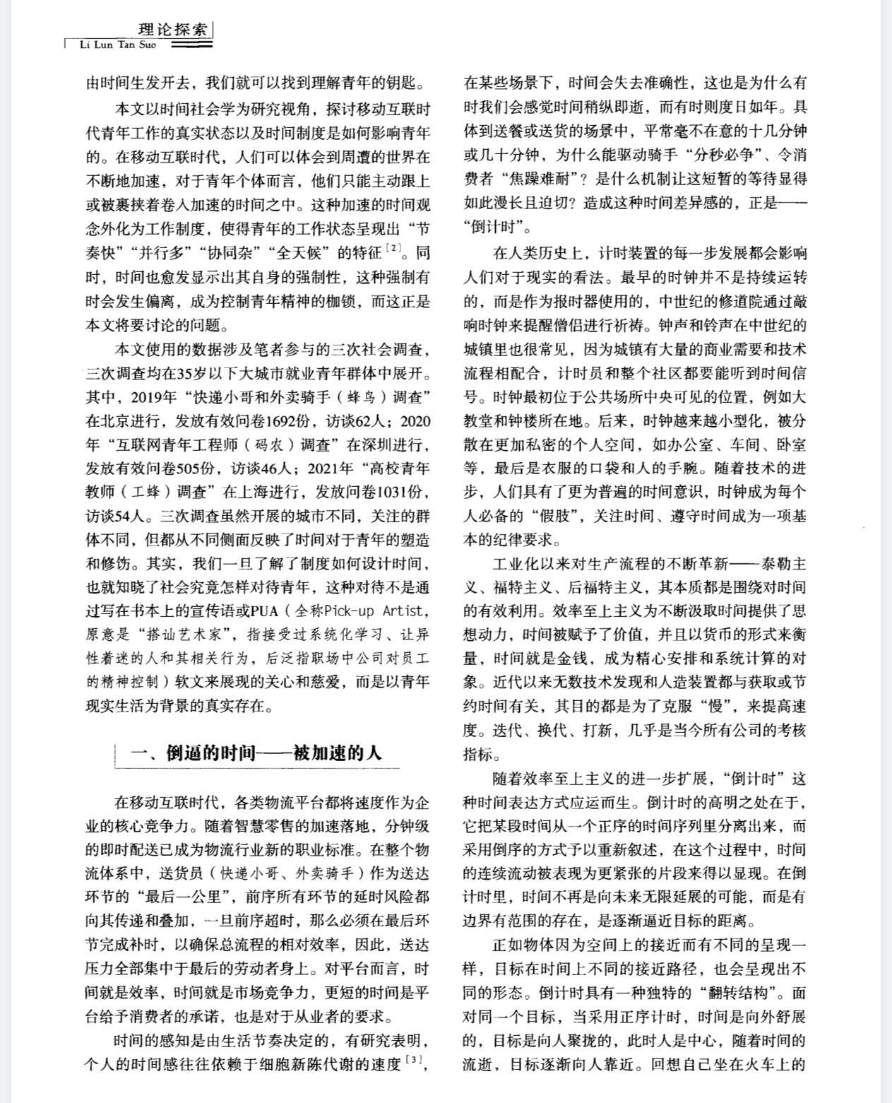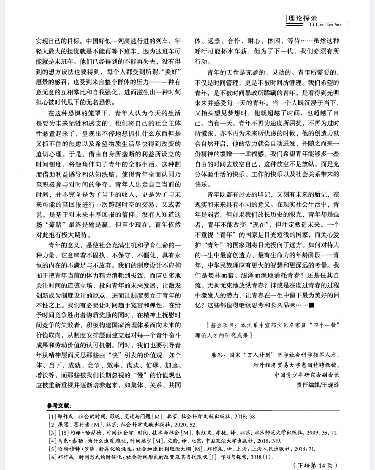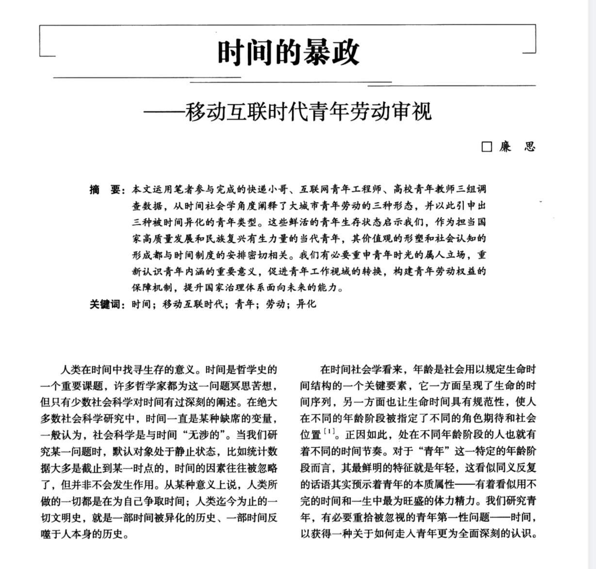 “科技的发展没有让人们休息时间变多,反而随时随地处于待命状态”“我们必须开始思考:什么样的社会能够让青年不以牺牲健康和自由为代价,去实现自己的梦想并过上幸福的生活?”这篇文章,是真真切切在关心青年人的存在。时间的暴政