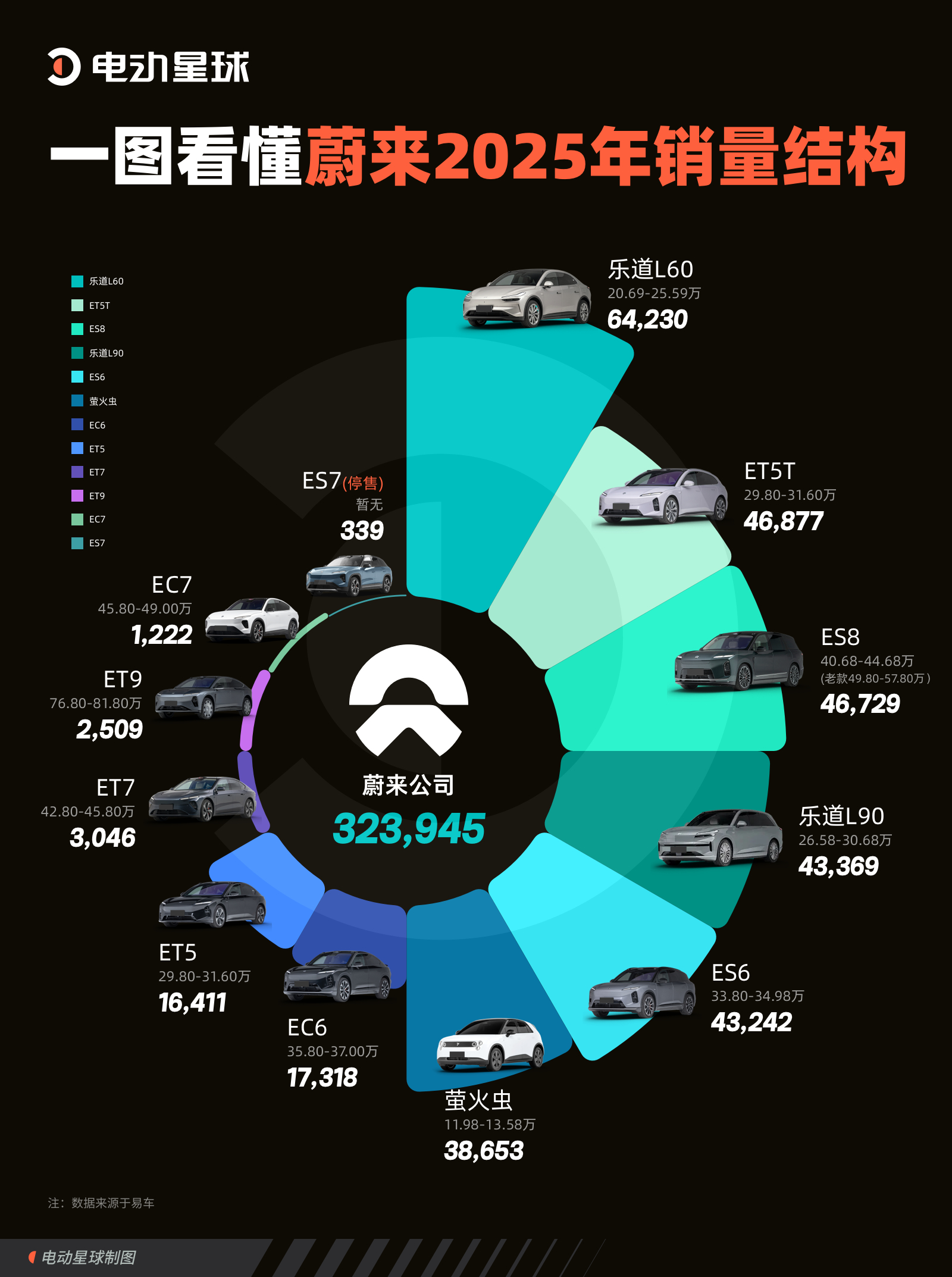 图源电动星球,蔚来车型是真多,价格覆盖12-82万算上萤火虫,销量在4万以上的车型有6款,多点开花但感觉还是缺个大爆款车型,希望今年能有🤔阿远说车
