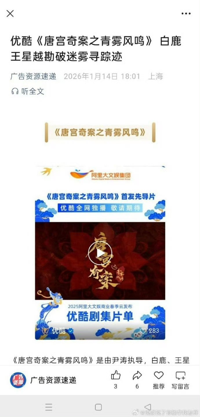 唐宫奇案待播时间白鹿王星越唐宫奇案招商了白鹿王星越唐宫奇案招商了,唐宫奇案待播