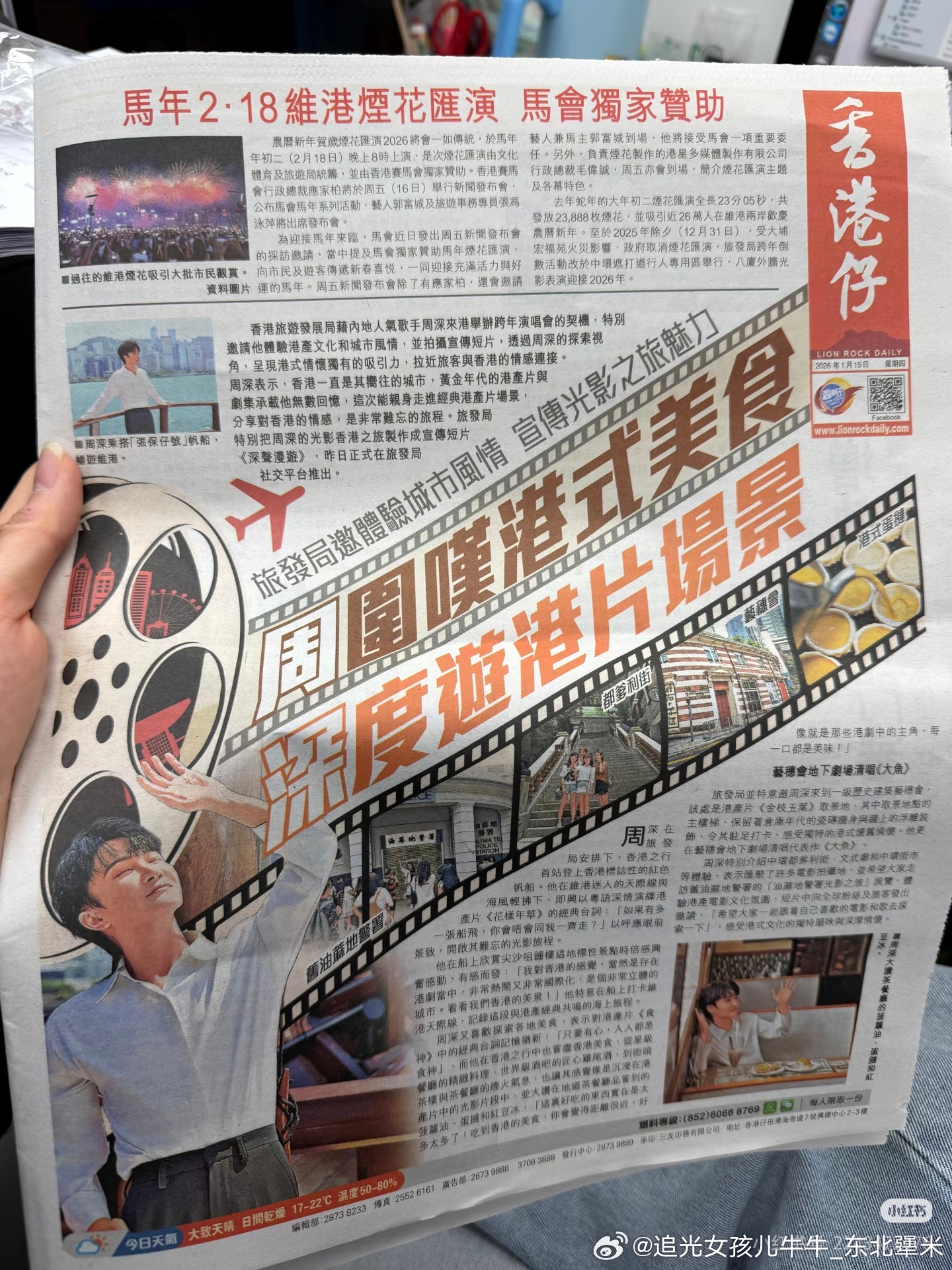 周深香港文体旅局局长发文感谢周深香港文旅你也很难戒断周深吧 2026-1-15香港今日头条报纸还在持续更新