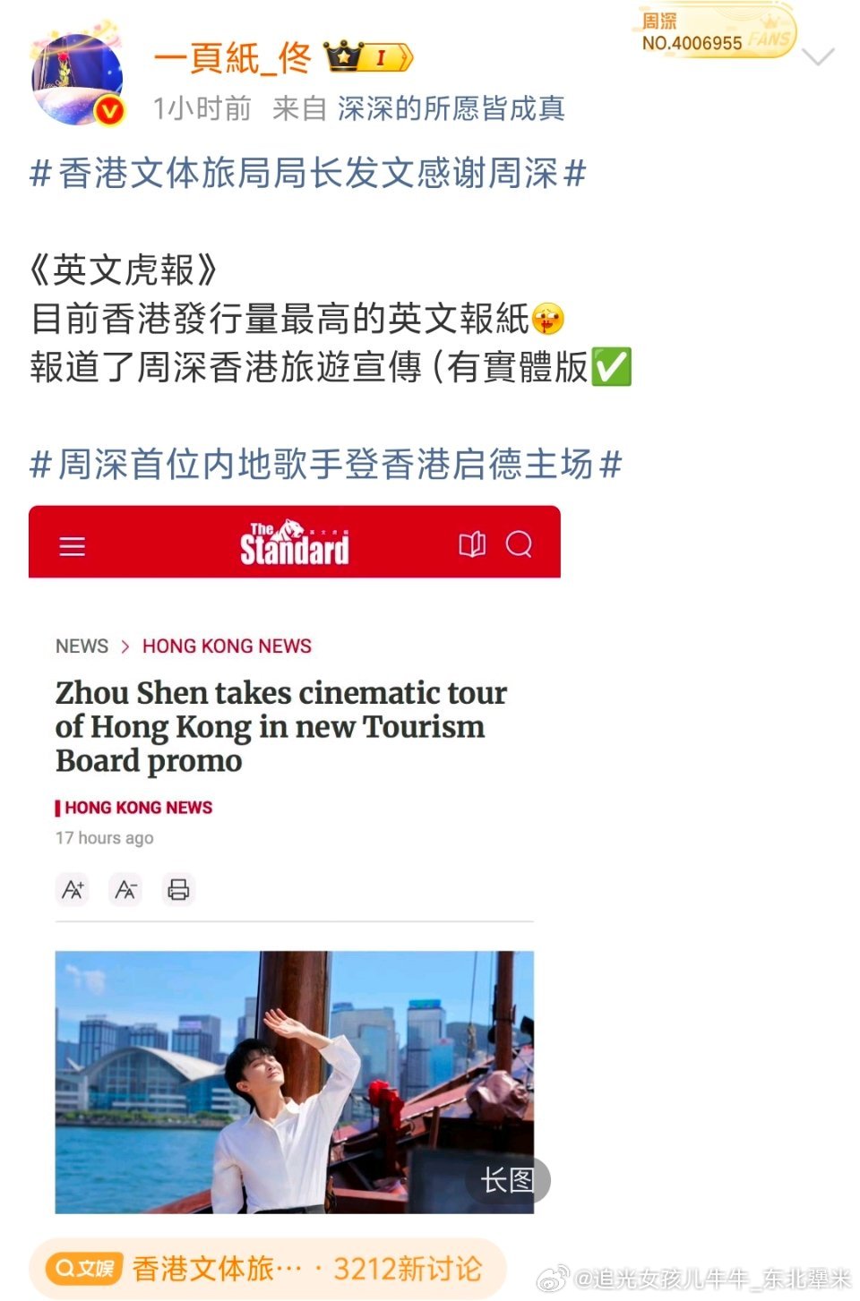周深香港文体旅局局长发文感谢周深香港文旅你也很难戒断周深吧 2026-1-15香