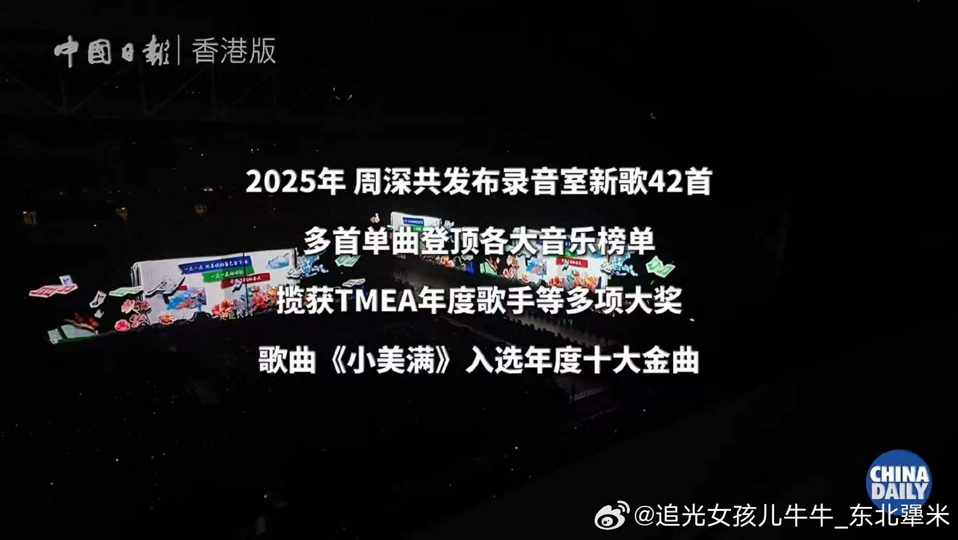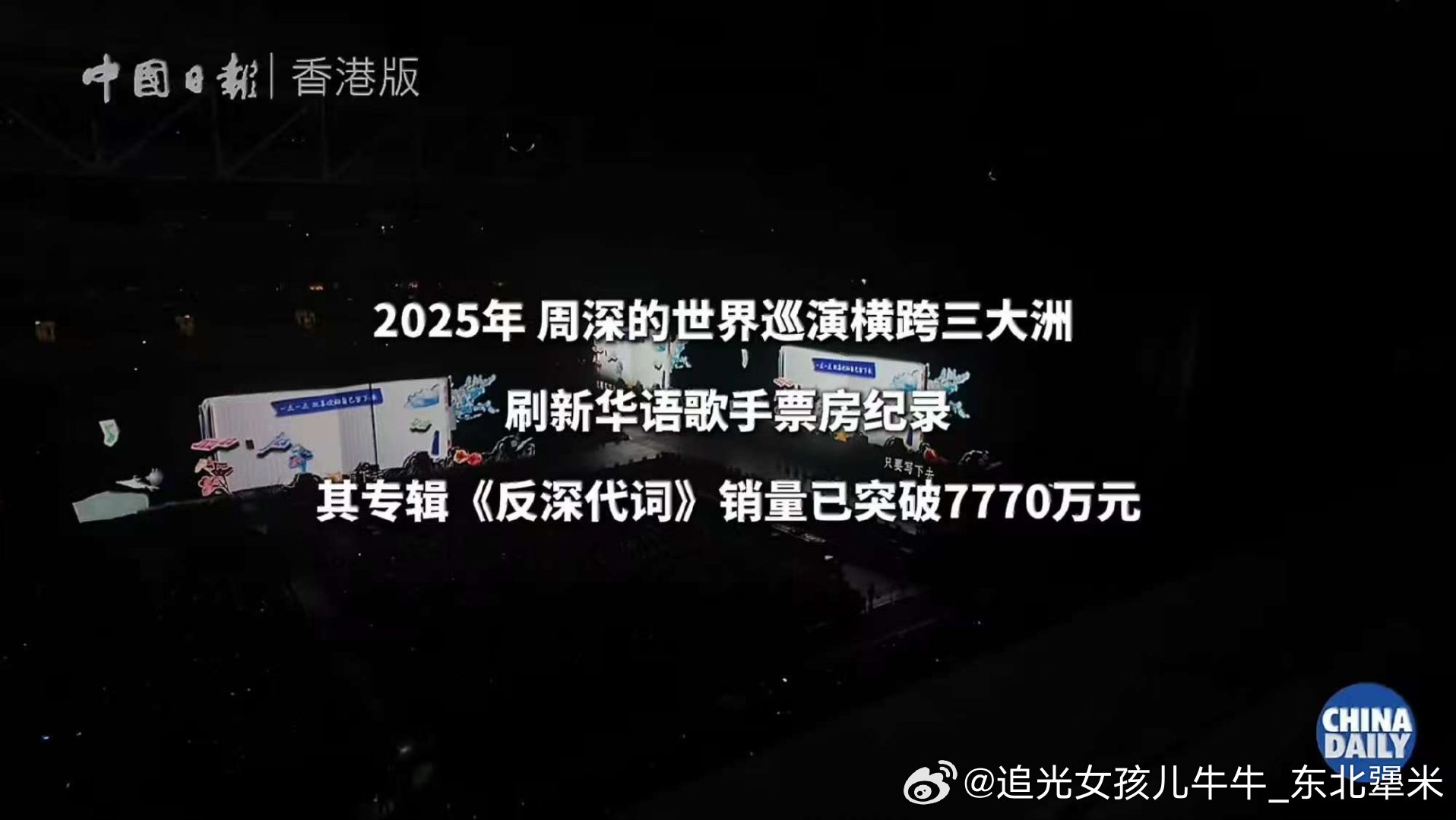 周深香港文体旅局局长发文感谢周深周深你又感情用事 中国日报竟然还给整理了数据 谁酸我布吉岛,但是我爽了2025年4月周深“9.29Hz”世界巡回演唱收官从北美到大洋洲 亚洲 四国七城共十场演出多站售馨华语音乐正在被世界听到2025年周深共发布录音室新歌42首多首单曲登顶各大音乐榜单揽获TMEA年度歌手等多项大奖歌曲《小美满》入选年度十大金曲2025年周深的世界巡演横跨三大洲刷新华语歌手票房纪录专辑《反深代词》销量已突破7770万元香港首个个人零点跨年现场演唱会启德主场馆启用后首场个人跨年演唱会成为首位在该场馆举办个人演唱会的内地歌手