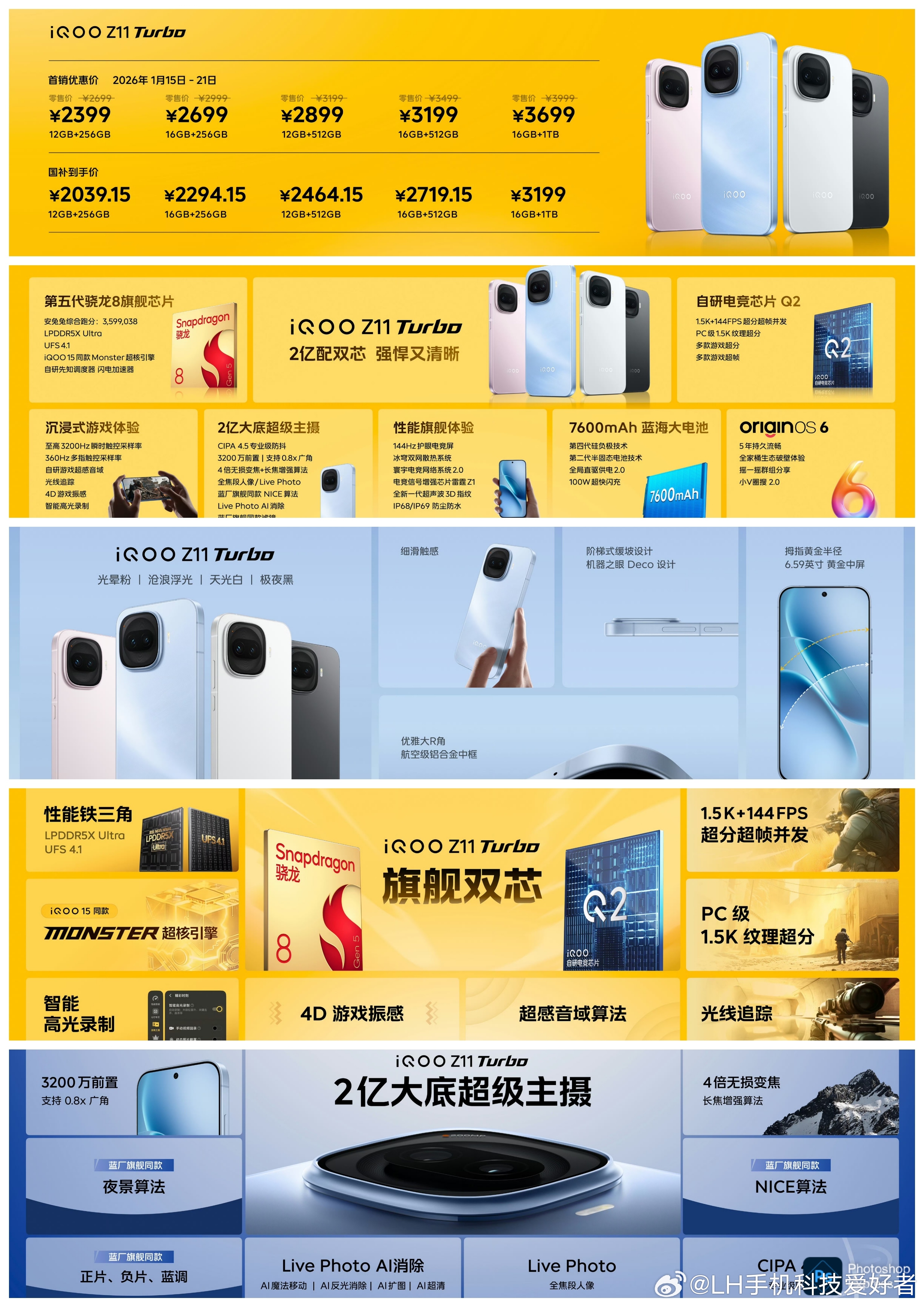 战斗精灵iQOOZ11Turbo来了iQOO Z11 Turbo,2399元至3699元,国补后2039.15元起,这个价格和配置,有没有性价比?