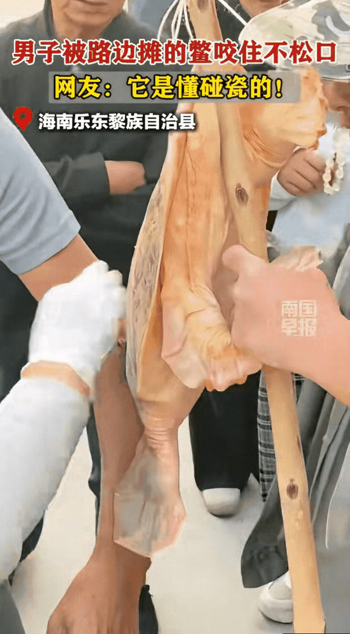 海南男子逛街被老鳖死死咬住手臂,老板施救无果,最终这样脱困。 “万万没想到!”1月13日,海南,一名男子走在街上,突然感觉手臂被什么东西给咬住了,十分疼痛,男子低头一看,居然是一只老鳖,卖老鳖的老板见状也是吓坏了,没想到这玩意还主动去攻击人,于是老板赶紧上前帮忙想办法,奈何,老鳖死死咬住男子就是不松口。 被咬的男子姓陈,今年41岁,是海南本地做水果批发生意的,当天忙完生意后,沿着街边散步准备回家,路过一处水产小摊时,只是下意识往摊位方向瞥了一眼,手臂就突然传来一阵钻心的疼。陈先生猛地低头,发现一只巴掌大的老鳖正死死咬着自己的小臂,鳖壳青黑,嘴巴咬得紧紧的,任凭他怎么甩胳膊,老鳖都纹丝不动,疼得他额头瞬间冒了汗。 摆摊的老板姓林,今年56岁,在这条街卖水产快二十年了,卖过无数老鳖,还是第一次见老鳖主动咬人,更没见过咬上就不松口的。林老板赶紧放下手里的活计跑过来,先是试着轻轻掰老鳖的嘴巴,可老鳖的颚部咬合力极大,手指根本用不上劲,掰了半天一点缝隙都没掰开。周围路过的行人见状也围了过来,有人出主意捏老鳖的鼻子,说这样能让它松口,林老板赶紧照做,捏住老鳖的鼻子十几秒,老鳖反而咬得更紧了,陈先生疼得忍不住闷哼了一声。 又有人说用温水浇老鳖的壳,或许能让它放松警惕,林老板立刻从摊位旁端来温水,慢慢浇在老鳖身上,可依旧没起作用。还有路人提议用火烧老鳖的尾部,被林老板立刻制止了,他说老鳖要是被火烫到,受惊后只会咬得更狠,反而会让陈先生伤得更重,而且这么做也容易伤到老鳖,还可能引发安全问题。 此时陈先生的小臂已经被老鳖咬出了血印,伤口周围慢慢红肿起来,他强忍着疼,额头的汗顺着脸颊往下淌,周围的人看着都跟着着急。林老板一边安抚陈先生的情绪,一边掏出手机联系了附近的社区卫生站,说明情况后,医生在电话里告知了处理要点,还提醒林老板不要强行掰扯,避免造成陈先生手臂二次受伤,也让老鳖因受惊加剧咬合力度。 挂了电话,林老板按照医生的嘱咐,找来一个盆,接了些清水,小心翼翼地将老鳖的身体慢慢浸入水中,只留咬着手臂的头部在外面。神奇的是,老鳖在水里待了大概两分钟,嘴巴居然慢慢松动了,林老板抓住时机,轻轻一掰,老鳖终于松口了,周围的人都忍不住松了口气。 陈先生立刻被送往社区卫生站处理伤口,医生为他清洗了伤口,做了消毒处理,还建议他去医院注射破伤风疫苗,避免伤口感染。医生说,老鳖一般不会主动攻击人类,此次袭人大概率是因为摊位摆放的老鳖受到了外界惊扰,加上陈先生路过时手臂靠近,老鳖出于自卫才发起攻击,而且老鳖一旦咬住东西,会凭借本能死死咬合,强行拉扯只会让伤口撕裂得更严重,浸入水中是利用其生存习性让它放松警惕,是相对安全的处理方式。 林老板也觉得十分愧疚,主动承担了陈先生的伤口处理费用,还再三向陈先生道歉。陈先生说,事情发生得太突然,自己也没料到会被老鳖咬,好在最后顺利脱困,也没有太过责怪林老板,只是提醒他以后摆摊要把水产安置好,避免再发生类似的情况。 这件事也让周围的市民涨了知识,遇到被老鳖咬伤的情况,千万不要强行掰扯,要利用科学的方法处理,既保护自己,也避免伤害到动物。生活里总会遇到各种突发状况,冷静处理加上科学应对,才是解决问题的关键。 各位读者你们怎么看?欢迎在评论区讨论