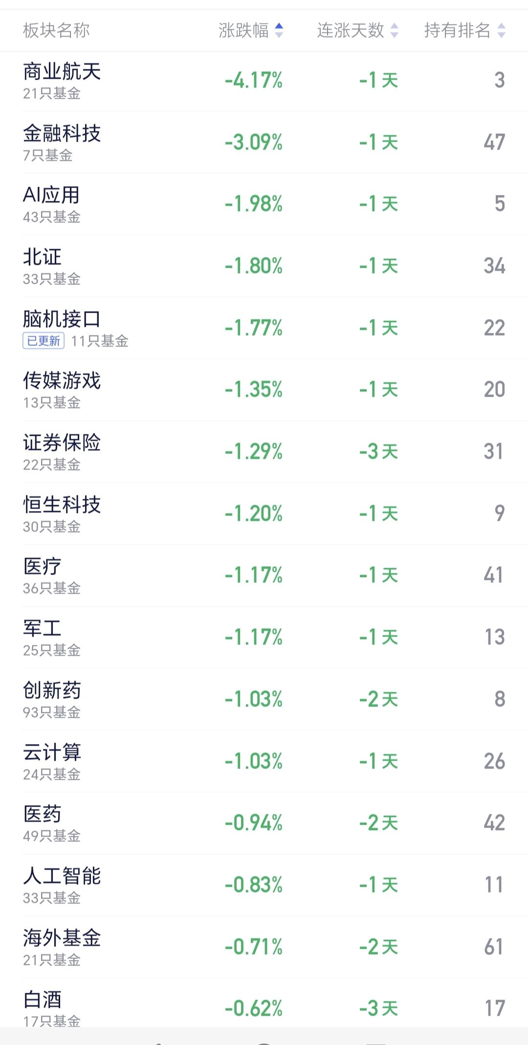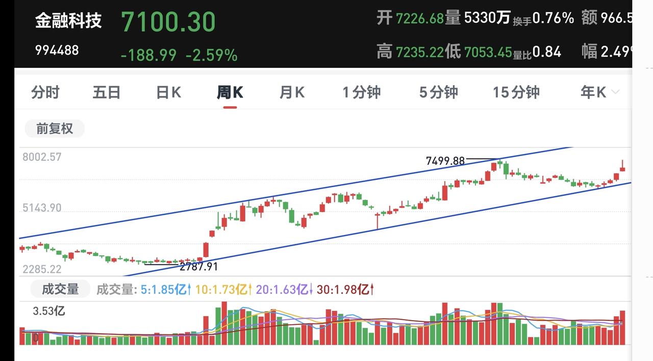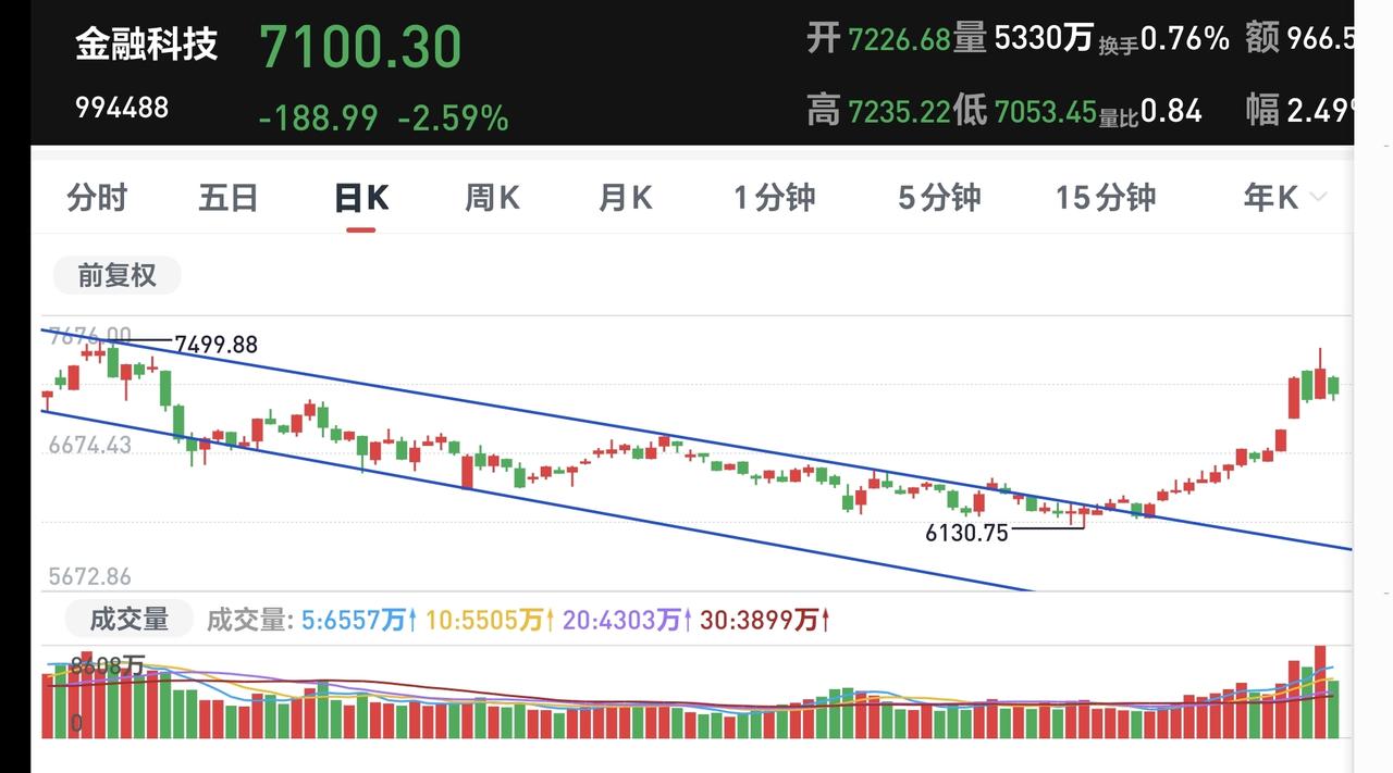 基金:市场这一次会调整到哪里 欧洲市场今天是涨跌不一,英国上涨了0.44%,德国下跌了0.01%,法国下跌了0.34%,涨跌幅度都不大。 香港市场今天是下跌,恒生指数下跌了0.28%,国企指数下跌了0.52%,恒生科技指数下跌了1.35%。 图3是今天基金的加仓排行榜,图4是今天基金的减仓排行榜,图5是今天基金的持有人数飙升榜,图6是今天基金的加仓人数和减仓人数,今天加仓67362009人,今天减仓30352387人,今天加仓人数超过了减仓人数。 持有的基金净值部分已经更新,上涨幅度最大的三个板块是:5G板块,兴全合宜,芯片半导体板块,下跌幅度最大的三个板块是:证券板块,创新药板块,可控核聚变板块,净值暂时亏损了1573元。 有朋友留言,让我讲一下今天不动的原因: 1:这次调整了外因,是昨天提高融资准备金的消息,这个消息并不是为了把市场从上涨趋势转变为下跌趋势,而是为了让上涨的速度降下来,让市场不能发展成为疯牛,市场成为慢牛的走势,所以,大方向向上的观点不变,在大方向向上的情况之下,空仓是最大的风险。 2:这次调整的内因,是市场17连阳涨幅度很大,积累了很多的获利盘,在没有外部消息的情况下,也是有调整的需求的,这样的调整是为了后市更好的上涨,这样的调整是为了让后市的上涨更加的持久,这样的情况之下,空仓是有风险的。 3:我们来看一下下面的截图九,这是上证指数日K线图,从图中可以看出这一轮的上涨是从3815.84点开始的,最高点是4190.87点。 上涨了: 4190.87-3815.84=375.03点。 如果是浅调整 375.03×0.382=143.26点 4190.87-143.26=4047.61点 如果是中调整 375.03×0.50=187.52点 4190.87-187.52=4003.35点 如果是深调整 375.03×0.618=231.77点 4190.87-231.77=3959.10点 4:我们来看一下下面的截图10,这是上证指数走势预演图,图中的1是起涨点3815点,图中的2是这一轮的高点4190点,现在处于2-3的区间中。 如果是浅调整,3的位置就是4047.61点,如果是中调整,3的位置就是4003.35点,如果是深调整,3的位置就是3959.10点。 按照今天的走势来判断,浅调整的可能性最大,但近期还需要继续观察,市场走势变化之后,我会根据市场的最新走势,及时更新观点。 今天上涨幅度最大的三个板块是:Cpo板块,半导体板块,固态电池板块,见下面的截图11,今天下跌幅度最大的三个板块是:商业航天板块,金融科技板块,AI应用板块,见下面的截图12。 我们来看一下下面的截图13,这是金融科技板块日K线图,从图中可以看出,我画了两条倾斜向下的斜线,这是金融科技板块日线级别下跌通道,前段时间上涨突破了这个下跌通道的上轨,也就是说,金融科技板块日线级别下跌趋势已经被改变。 我们来看一下下面的截图14,这是金融科技板块周K线图,从图中可以看出,我画了两条倾斜向上的斜线,这是金融科技板块周线级别上涨通道,现在的位置处于这个上涨通道中,也就是说,金融科技板块周线级别处于上涨趋势中,持有的人可以继续持有,除非跌破这个上涨通道的下轨,才可以考虑要不要止盈出来观望。 我给你30分钟,我只要你11秒钟,你花10秒钟就可以给我一个评论,你花1秒钟就可以给我点一个赞,评论和点赞是你的美德,谢谢你的评论和点赞。 我每天都会分享我的观点,我的观点只代表我个人的看法,不能作为你操作的依据,据此操作后果自负。