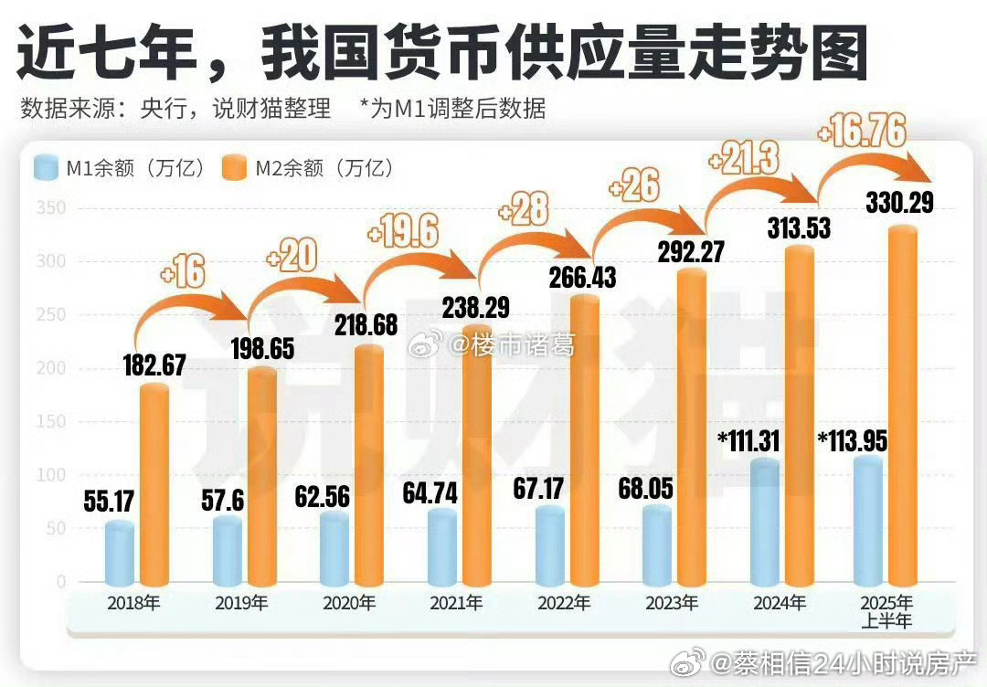 M2余额340.29万亿元(+8.5%),M1余额115.5万亿元(+3.8%),2024年年底,我们的m2总量是313.5万亿,所以今年增加27万亿了。 货币增加,而又通缩,那说明存量货币流通不畅,出现了流动性陷阱。老的钱不流通,国家为了刺激经济就会不停的增加货币供应,刺激市场。