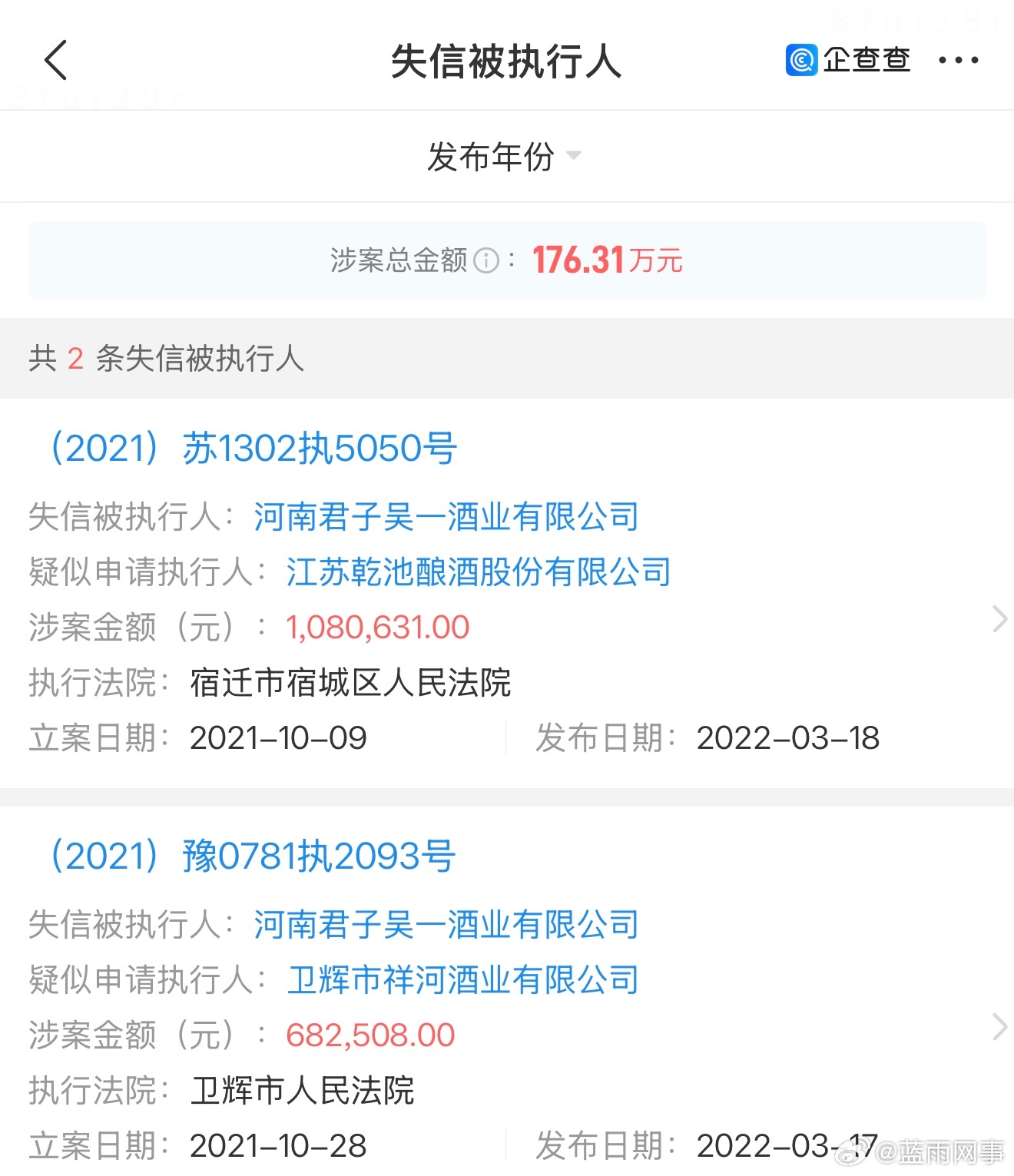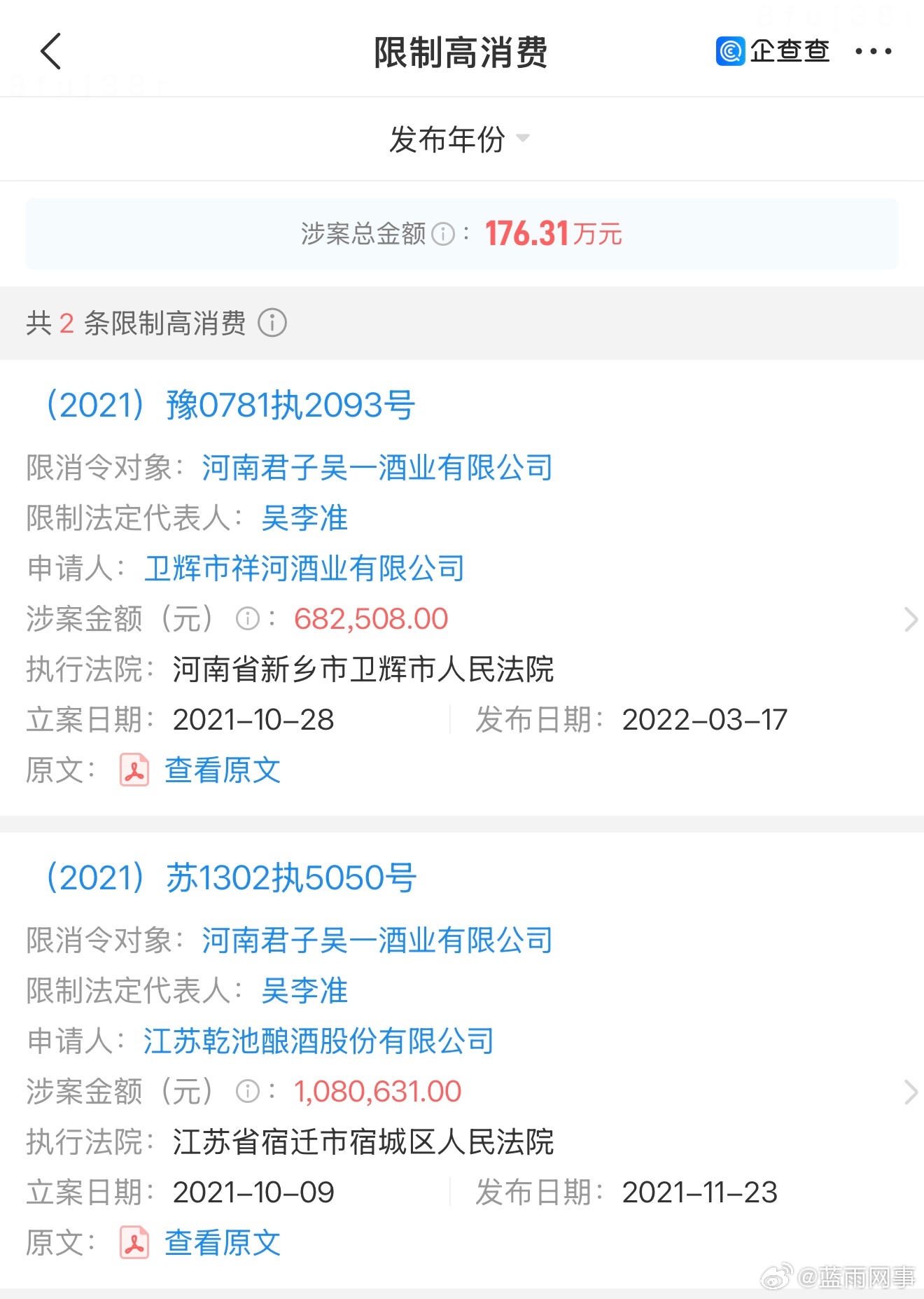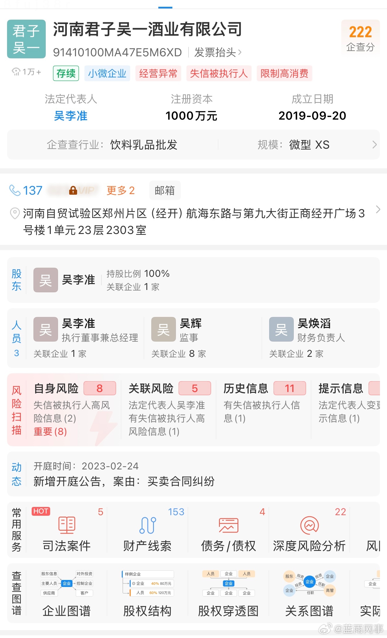 酒水一哥所属公司实际是老赖,消费者的权益能得到保障?蛋蛋宣传的所谓酒水一哥“吴一”实际为老赖,所属公司“河南君子吴一酒业有限公司”,该企业不止经营异常,还被两个地方法院列为“失信被执行人”,并且限制高消费,这样的企业蛋蛋都敢让他供货,消费者买完能放心吗?