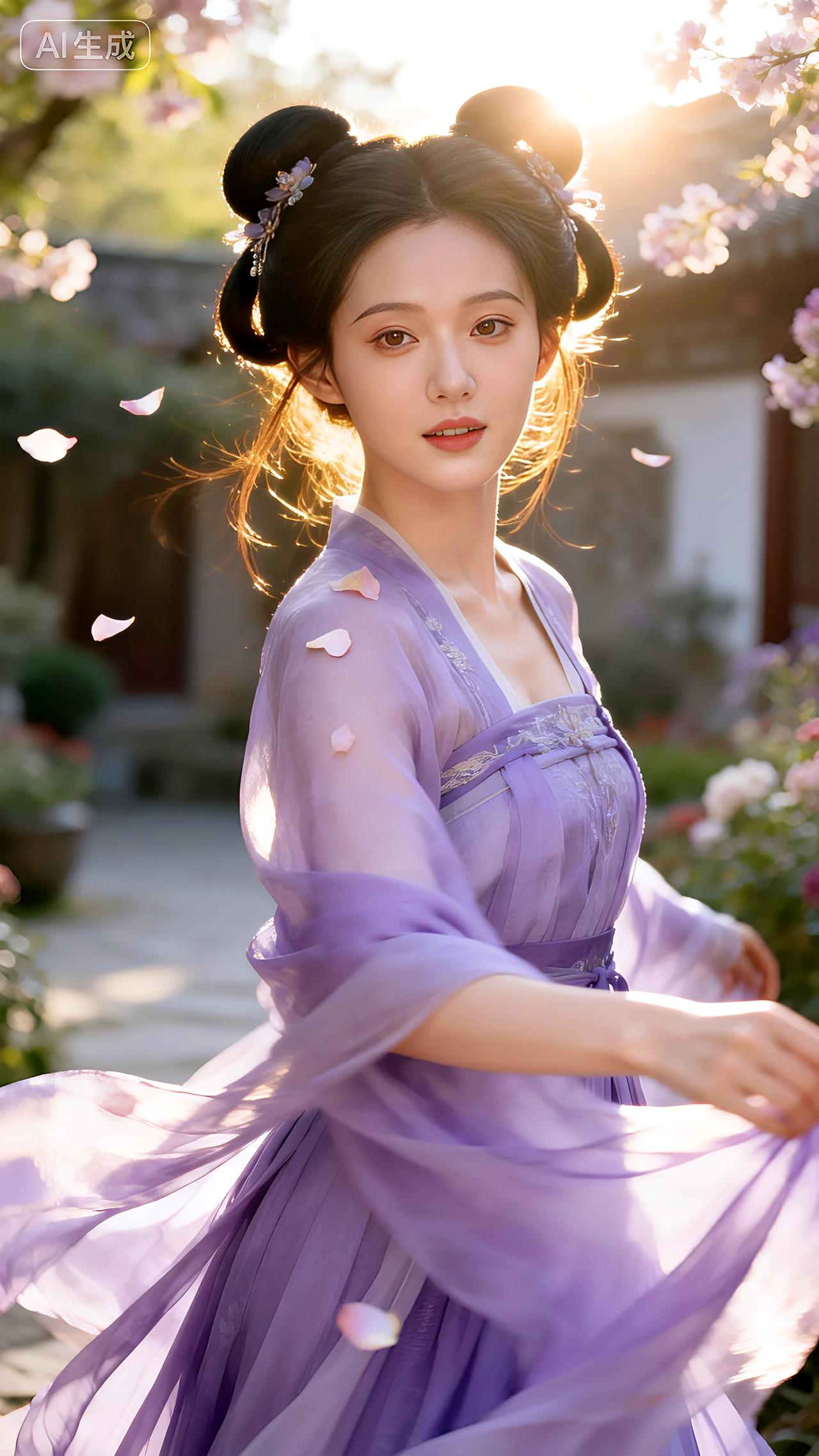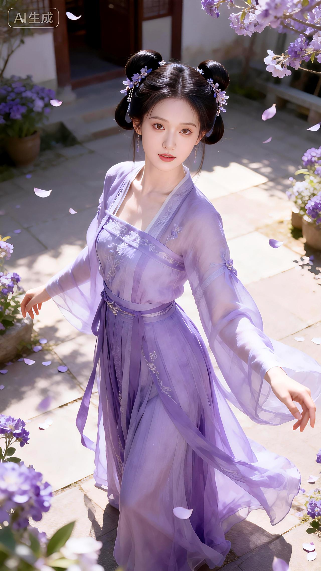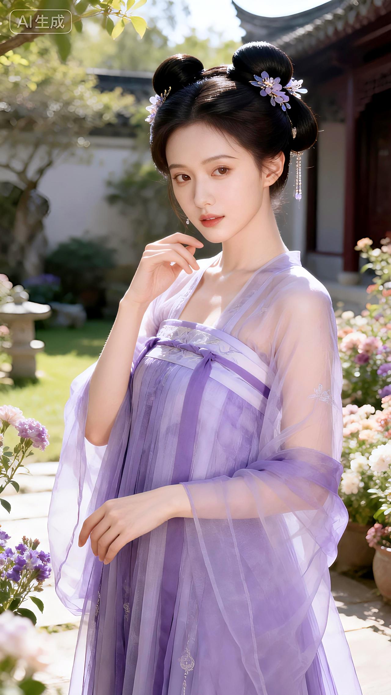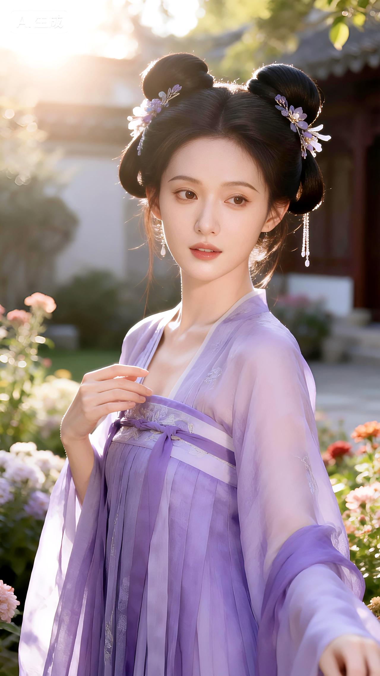 花间独坐理云裳,疑是紫衣仙子入梦迟。