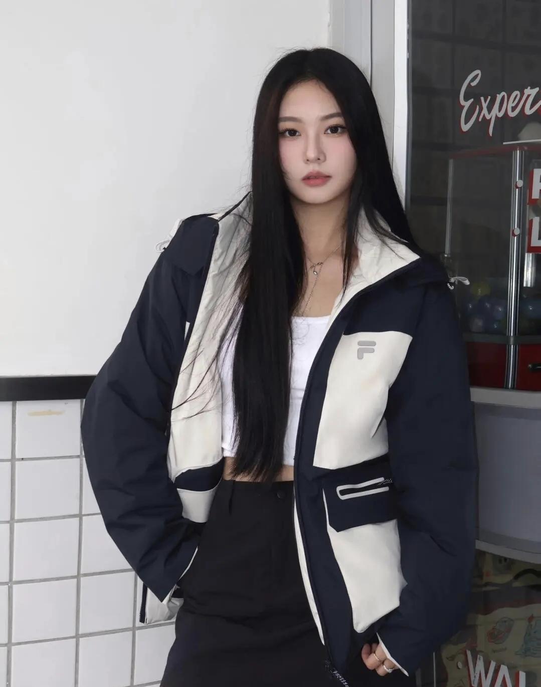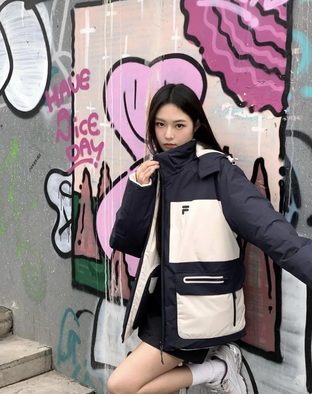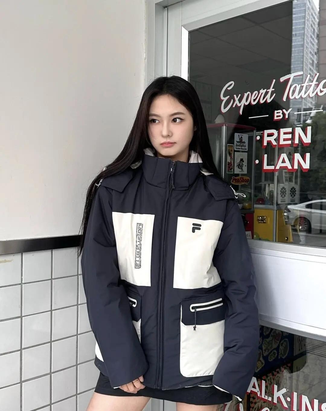 城市街巷的酷感瞬间,藏青与米白的撞色外套裹着随性,发丝扬起来的那一刻,风都成了氛围感的配角