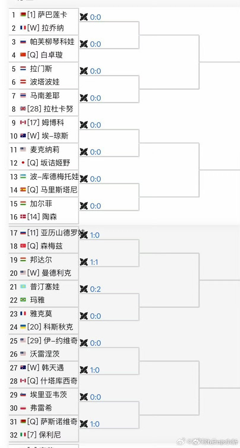 这么一看这很澳网 帅姐的十年之约签运最好但是实则遭遇战。对手现在还在霍巴特半决赛去年帅姐赢下霍巴特冠军凯斯勒🇺🇸今年?澳网2026 女单资格赛选手落位[Q]🇨🇳袁悦 vs 斯瓦泰克🇵🇱[Q]🇨🇳白卓璇 vs帕芙柳琴科娃🇷🇺(R2 🇧🇾萨巴伦卡)🇨🇳王欣瑜vs卡利尼娜🇺🇦[Q]张帅VS普雷斯顿这。。。。 大家觉得怎么样